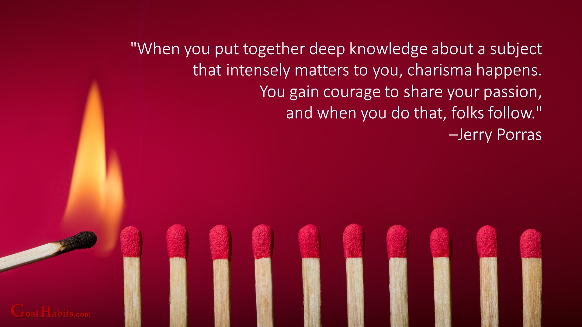 “When you put together deep knowledge about a subject that intensely matters to you, charisma happens. You gain courage to share your passion, and when you do that, folks follow.”