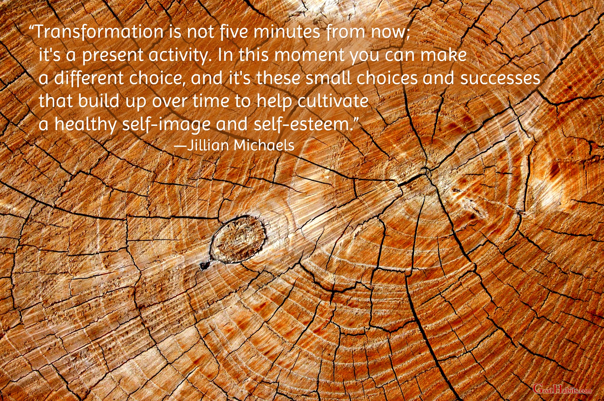 “Transformation is not five minutes from now; it’s a present activity. In this moment you can make a different choice, and it’s these small choices and successes that build up over time to help cultivate a healthy self-image and self-esteem.”