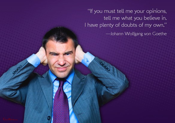 “If you must tell me your opinions, tell me what you believe in. I have plenty of doubts of my own.“