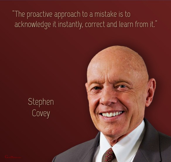 Success Quote – July 28, 2017 Posted on July 28, 2017 by Paul Mark Sutherland “The proactive approach to a mistake is to acknowledge it instantly, correct and learn from it.” –Stephen Covey __________________________ Enjoy today. Achieve today. Tomorrow is promised to no one! original graphic credit: unknown Share this: Click to share on Facebook (Opens in new window) Facebook Click to share on X (Opens in new window) X Click to share on LinkedIn (Opens in new window) LinkedIn Click to share on Pinterest (Opens in new window) Pinterest Click to share on Reddit (Opens in new window) Reddit Click to email a link to a friend (Opens in new window) Email More Click to print (Opens in new window) Print Like Loading...