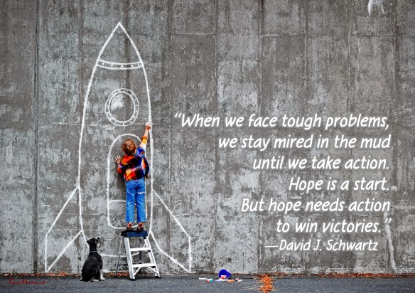 “When we face tough problems, we stay mired in the mud until we take action. Hope is a start. But hope needs action to win victories.”