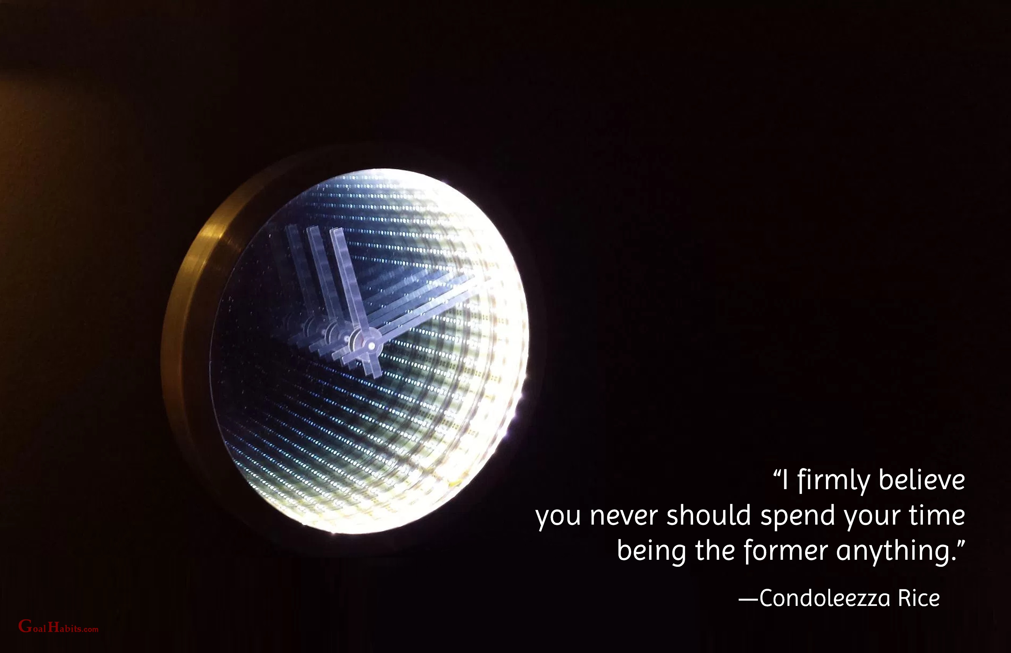 Success Quote – Sep. 18, 2017 Posted on September 18, 2017 by Paul Mark Sutherland “I firmly believe you never should spend your time being the former anything.” —Condoleezza Rice __________________________ Enjoy today. Achieve today. Tomorrow is promised to no one! original graphic credit: unknown Share this: Click to share on Facebook (Opens in new window) Facebook Click to share on X (Opens in new window) X Click to share on LinkedIn (Opens in new window) LinkedIn Click to share on Pinterest (Opens in new window) Pinterest Click to share on Reddit (Opens in new window) Reddit Click to email a link to a friend (Opens in new window) Email More Click to print (Opens in new window) Print Like Loading...