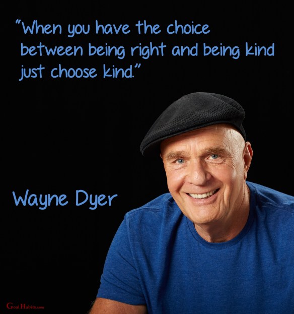 Success Quote – Dec. 3, 2017 Posted on December 3, 2017 by Paul Mark Sutherland “When you have the choice between being right and being kind just choose kind.” —Wayne Dyer __________________________ Enjoy today. Achieve today. Tomorrow is promised to no one! original graphic credit: unknown Share this: Click to share on Facebook (Opens in new window) Facebook Click to share on X (Opens in new window) X Click to share on LinkedIn (Opens in new window) LinkedIn Click to share on Pinterest (Opens in new window) Pinterest Click to share on Reddit (Opens in new window) Reddit Click to email a link to a friend (Opens in new window) Email More Click to print (Opens in new window) Print Like Loading...