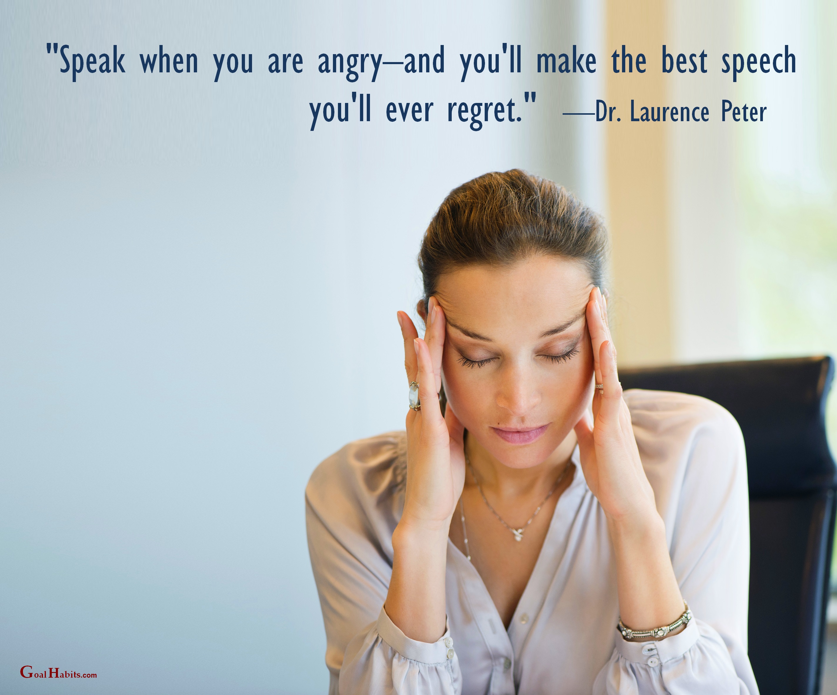 Success Quote – Feb. 24, 2018 Posted on February 24, 2018 by Paul Mark Sutherland “Speak when you are angry—and you’ll make the best speech you’ll ever regret.” –Dr. Laurence Peter ________________________ Enjoy today. Achieve today. Tomorrow is promised to no one! original graphic credit: unknown Share this: Share on Facebook (Opens in new window) Facebook Share on X (Opens in new window) X Share on LinkedIn (Opens in new window) LinkedIn Share on Pinterest (Opens in new window) Pinterest Share on Reddit (Opens in new window) Reddit Email a link to a friend (Opens in new window) Email More Print (Opens in new window) Print Like Loading...