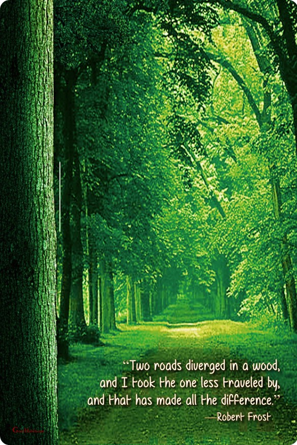 Success Quote on Courage Posted on December 14, 2018 by Paul Mark Sutherland “Two roads diverged in a wood, and I took the one less traveled by, and that has made all the difference.” —Robert Frost ________________________ Enjoy today. Achieve today. Tomorrow is promised to no one! original graphic credit: unknown Share this: Share on Facebook (Opens in new window) Facebook Share on X (Opens in new window) X Share on LinkedIn (Opens in new window) LinkedIn Share on Pinterest (Opens in new window) Pinterest Share on Reddit (Opens in new window) Reddit Email a link to a friend (Opens in new window) Email More Print (Opens in new window) Print Like Loading...
