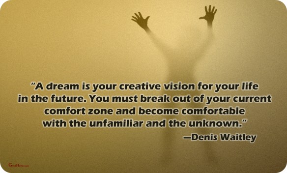 “A dream is your creative vision for your life in the future. You must break out of your current comfort zone and become comfortable with the unfamiliar and the unknown.”
