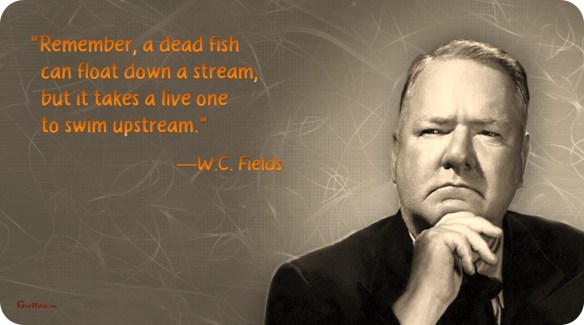 “Remember, a dead fish can float down a stream, but it takes a live one to swim upstream.”