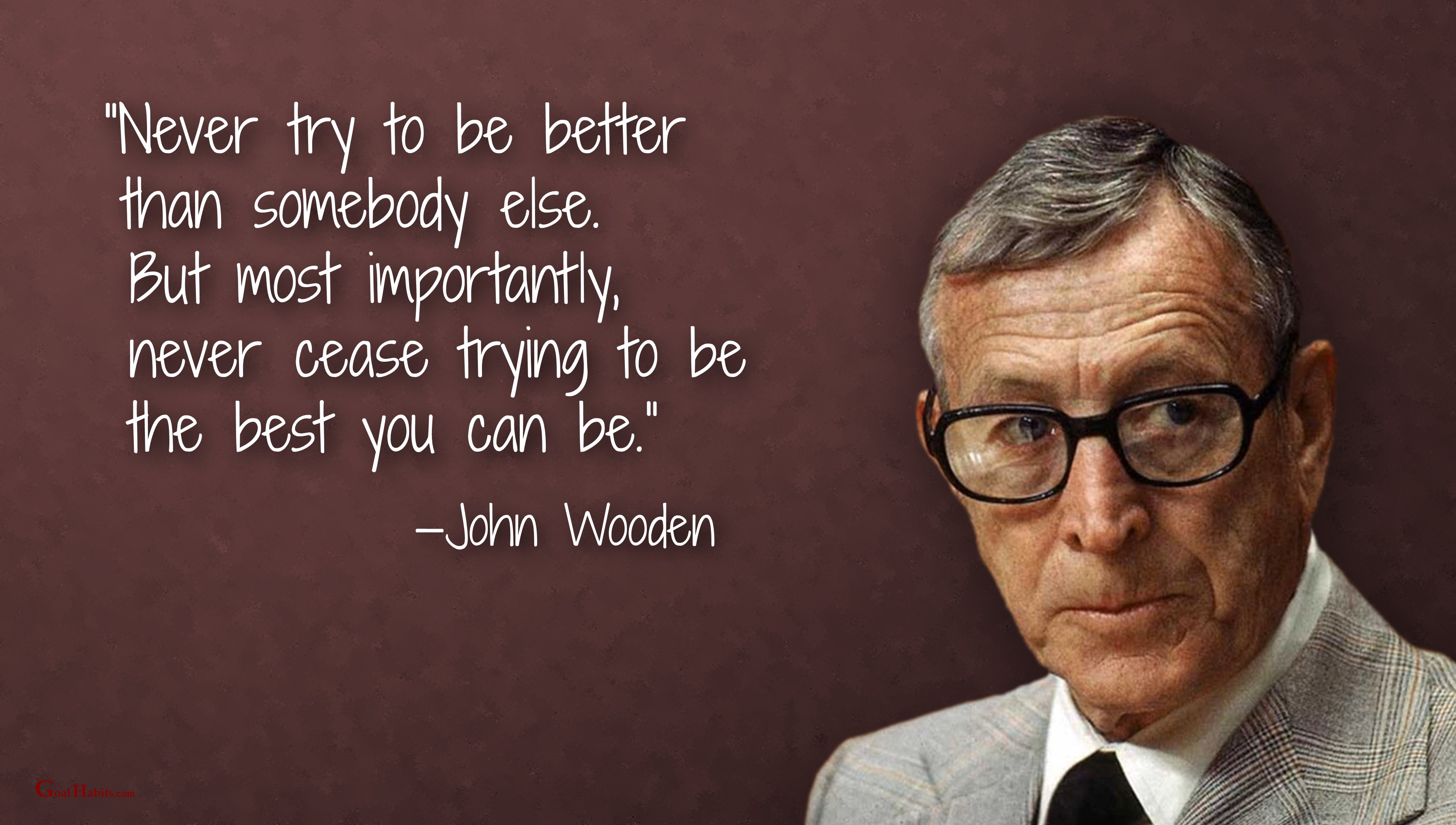 Success Quote on Potential Posted on December 3, 2019 by Paul Mark Sutherland “Never try to be better than somebody else. But most importantly, never cease trying to be the best you can be.” —John Wooden ________________________ Enjoy today. Achieve today. Tomorrow is promised to no one! original graphic credit: unknown Share this: Click to share on Facebook (Opens in new window) Facebook Click to share on X (Opens in new window) X Click to share on LinkedIn (Opens in new window) LinkedIn Click to share on Pinterest (Opens in new window) Pinterest Click to share on Reddit (Opens in new window) Reddit Click to email a link to a friend (Opens in new window) Email More Click to print (Opens in new window) Print Like Loading...