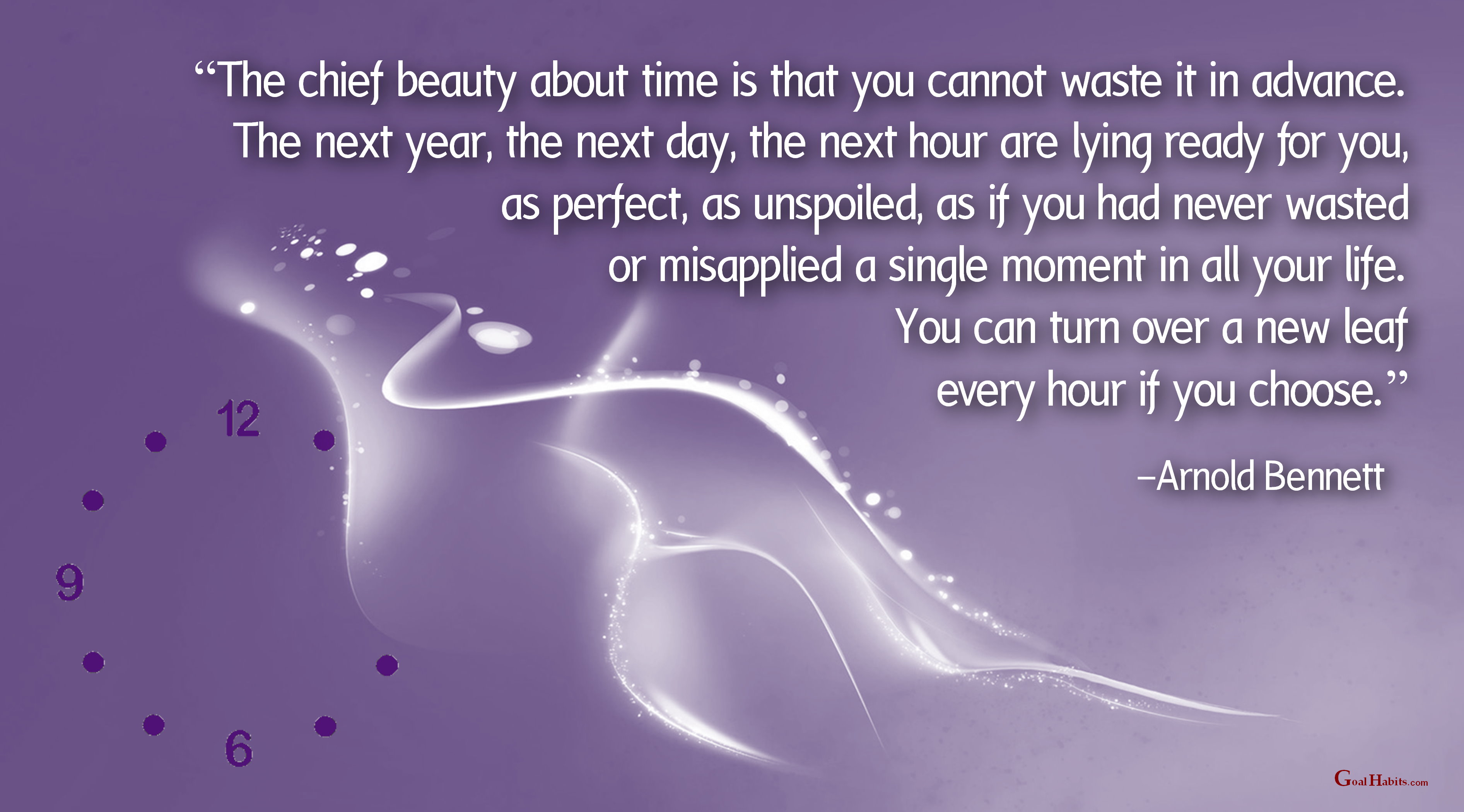 “The chief beauty about time is that you cannot waste it in advance. The next year, the next day, the next hour are lying ready for you, as perfect, as unspoiled, as if you had never wasted or misapplied a single moment in all your life. You can turn over a new leaf every hour if you choose.”