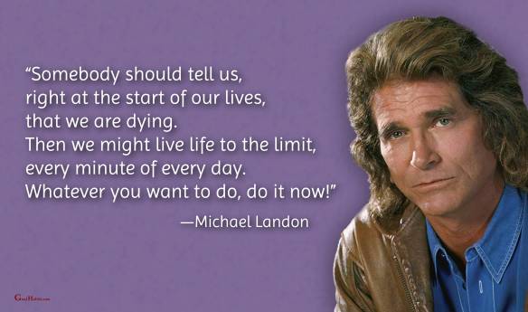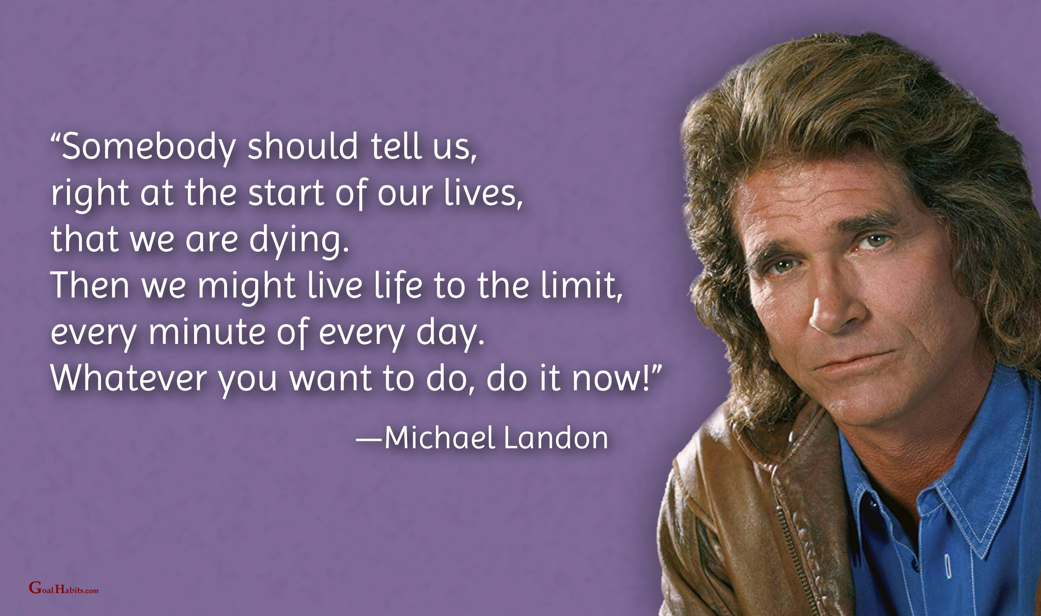 “Somebody should tell us, right at the start of our lives, that we are dying. Then we might live life to the limit, every minute of every day. Whatever you want to do, do it now!”