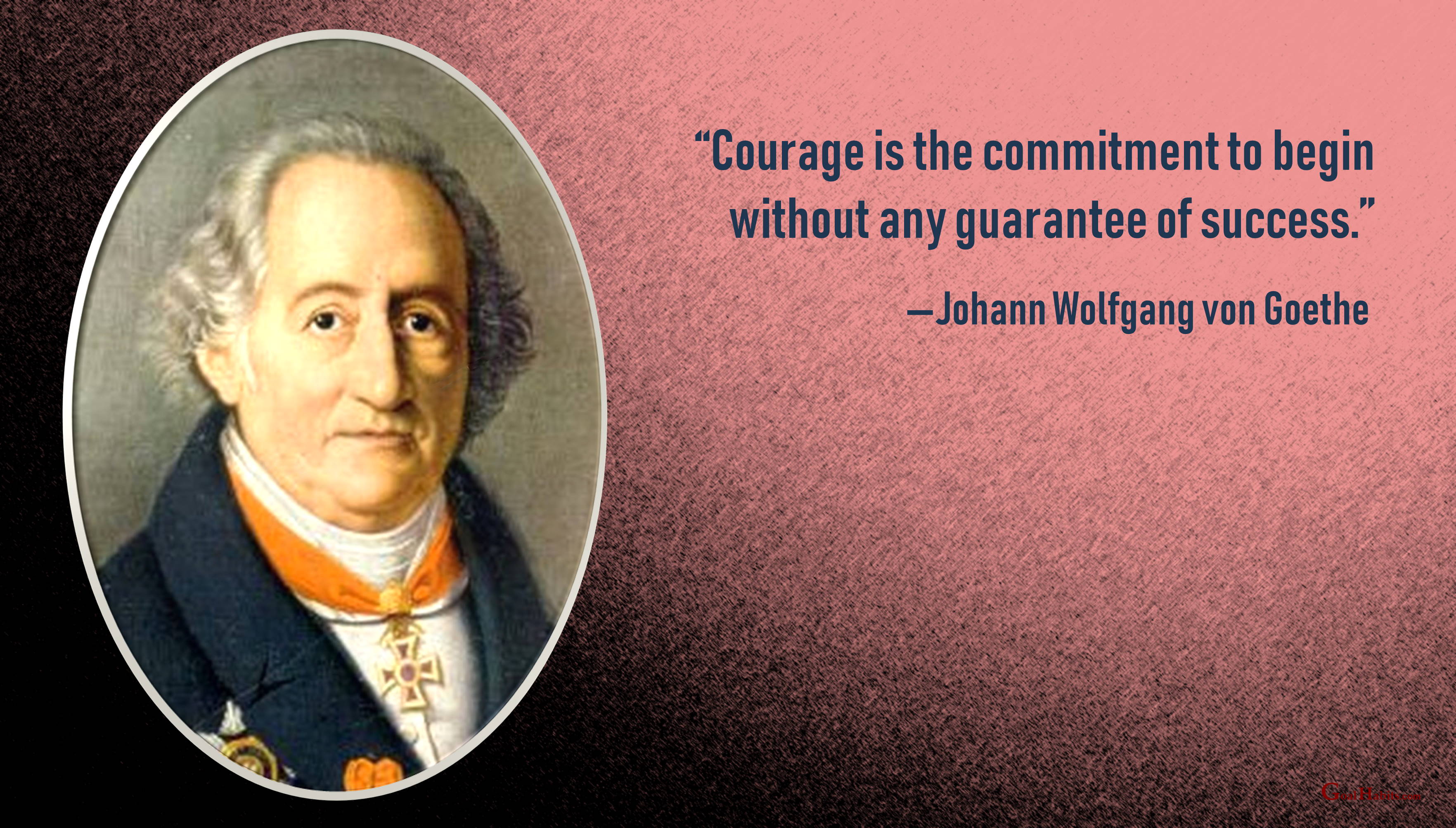 Success Quote on Courage Posted on January 27, 2020 by Paul Mark Sutherland “Courage is the commitment to begin without any guarantee of success.” —Johann Wolfgang von Goethe ________________________ Enjoy today. Achieve today. Tomorrow is promised to no one! original graphic credit: unknown Share this: Click to share on Facebook (Opens in new window) Facebook Click to share on X (Opens in new window) X Click to share on LinkedIn (Opens in new window) LinkedIn Click to share on Pinterest (Opens in new window) Pinterest Click to share on Reddit (Opens in new window) Reddit Click to email a link to a friend (Opens in new window) Email More Click to print (Opens in new window) Print Like Loading...