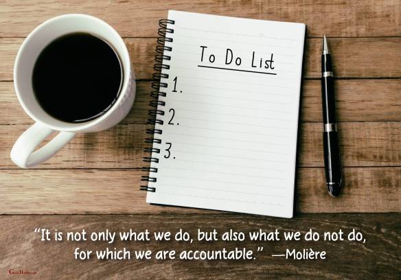 Success Quote on Accountability Posted on February 18, 2020 by Paul Mark Sutherland “It is not only what we do, but also what we do not do, for which we are accountable.” – Molière ________________________ Enjoy today. Achieve today. Tomorrow is promised to no one! original graphic credit: unknown Share this: Click to share on Facebook (Opens in new window) Facebook Click to share on X (Opens in new window) X Click to share on LinkedIn (Opens in new window) LinkedIn Click to share on Pinterest (Opens in new window) Pinterest Click to share on Reddit (Opens in new window) Reddit Click to email a link to a friend (Opens in new window) Email More Click to print (Opens in new window) Print Like Loading...