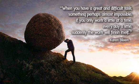 “When you have a great and difficult task, something perhaps almost impossible, if you only work a little at a time, every day a little, suddenly the work will finish itself.”