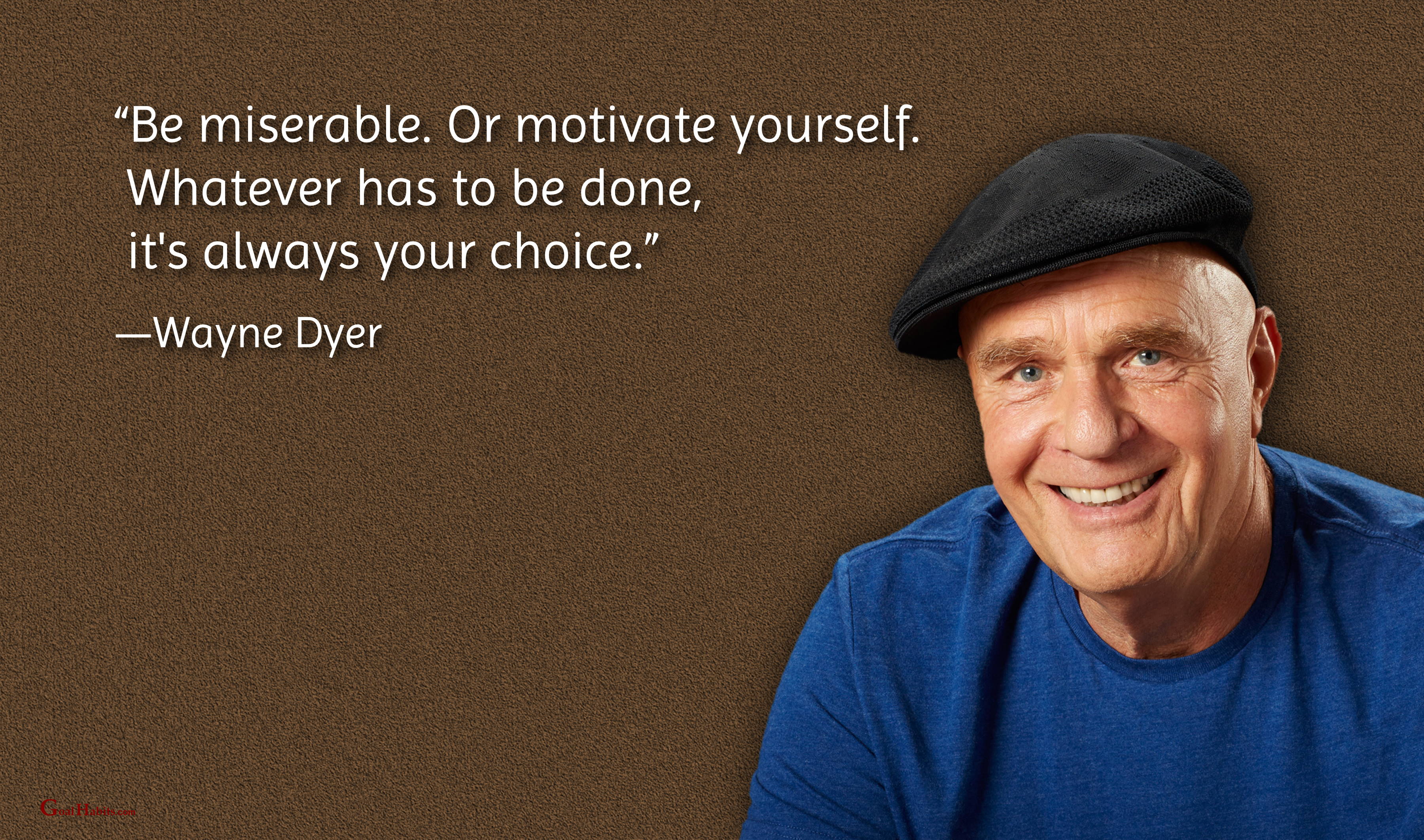 Success Quote on Choices Posted on March 19, 2020 by Paul Mark Sutherland “Be miserable. Or motivate yourself. Whatever has to be done, it’s always your choice.” —Wayne Dyer ________________________ Enjoy today. Achieve today. Tomorrow is promised to no one! original graphic credit: unknown Share this: Click to share on Facebook (Opens in new window) Facebook Click to share on X (Opens in new window) X Click to share on LinkedIn (Opens in new window) LinkedIn Click to share on Pinterest (Opens in new window) Pinterest Click to share on Reddit (Opens in new window) Reddit Click to email a link to a friend (Opens in new window) Email More Click to print (Opens in new window) Print Like Loading...