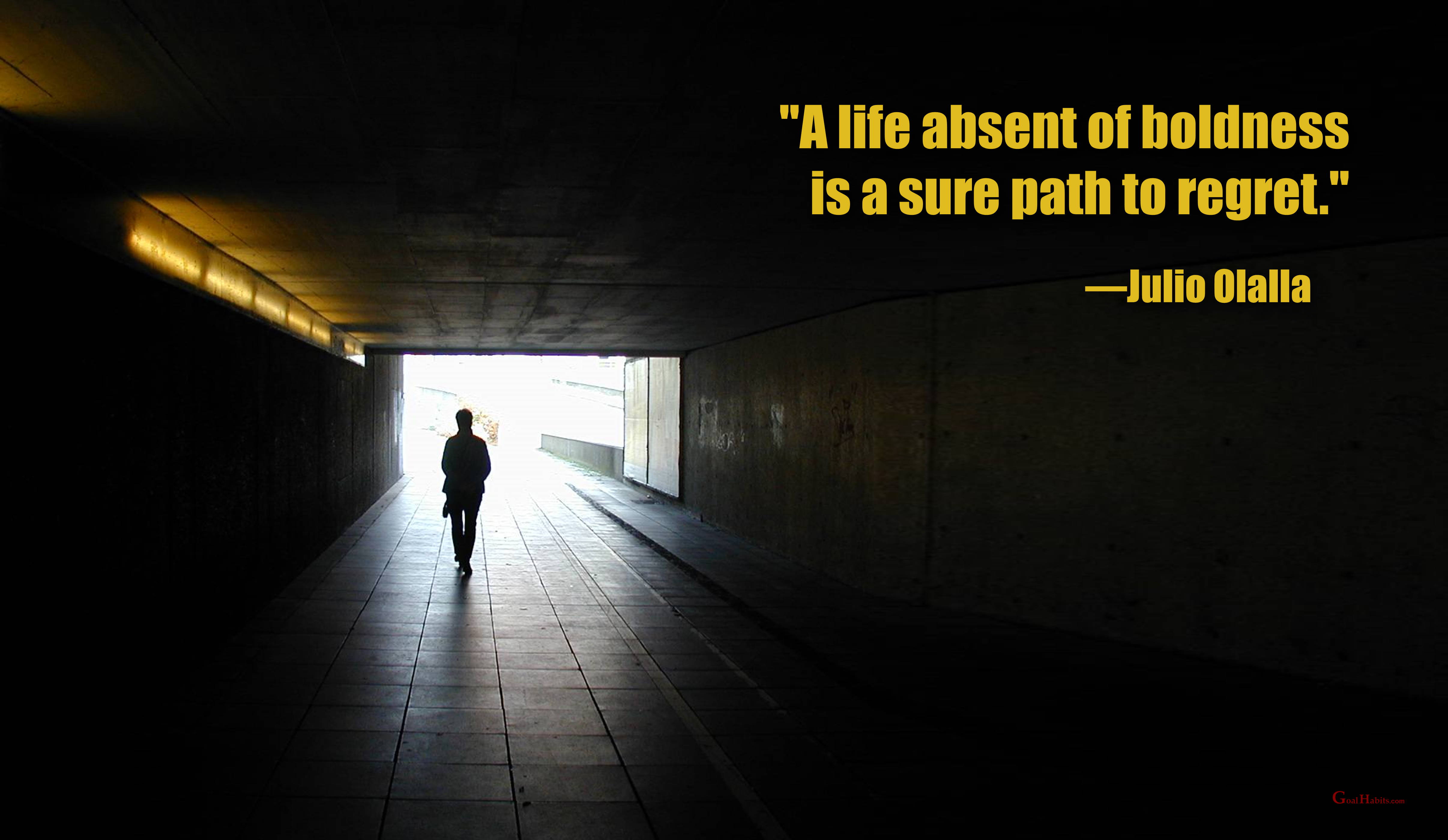 Success Quote on Risk Posted on May 20, 2020 by Paul Mark Sutherland “A life absent of boldness is a sure path to regret.” —Julio Olalla ________________________ Enjoy today. Achieve today. Tomorrow is promised to no one! original graphic credit: unknown Share this: Click to share on Facebook (Opens in new window) Facebook Click to share on X (Opens in new window) X Click to share on LinkedIn (Opens in new window) LinkedIn Click to share on Pinterest (Opens in new window) Pinterest Click to share on Reddit (Opens in new window) Reddit Click to email a link to a friend (Opens in new window) Email More Click to print (Opens in new window) Print Like Loading...