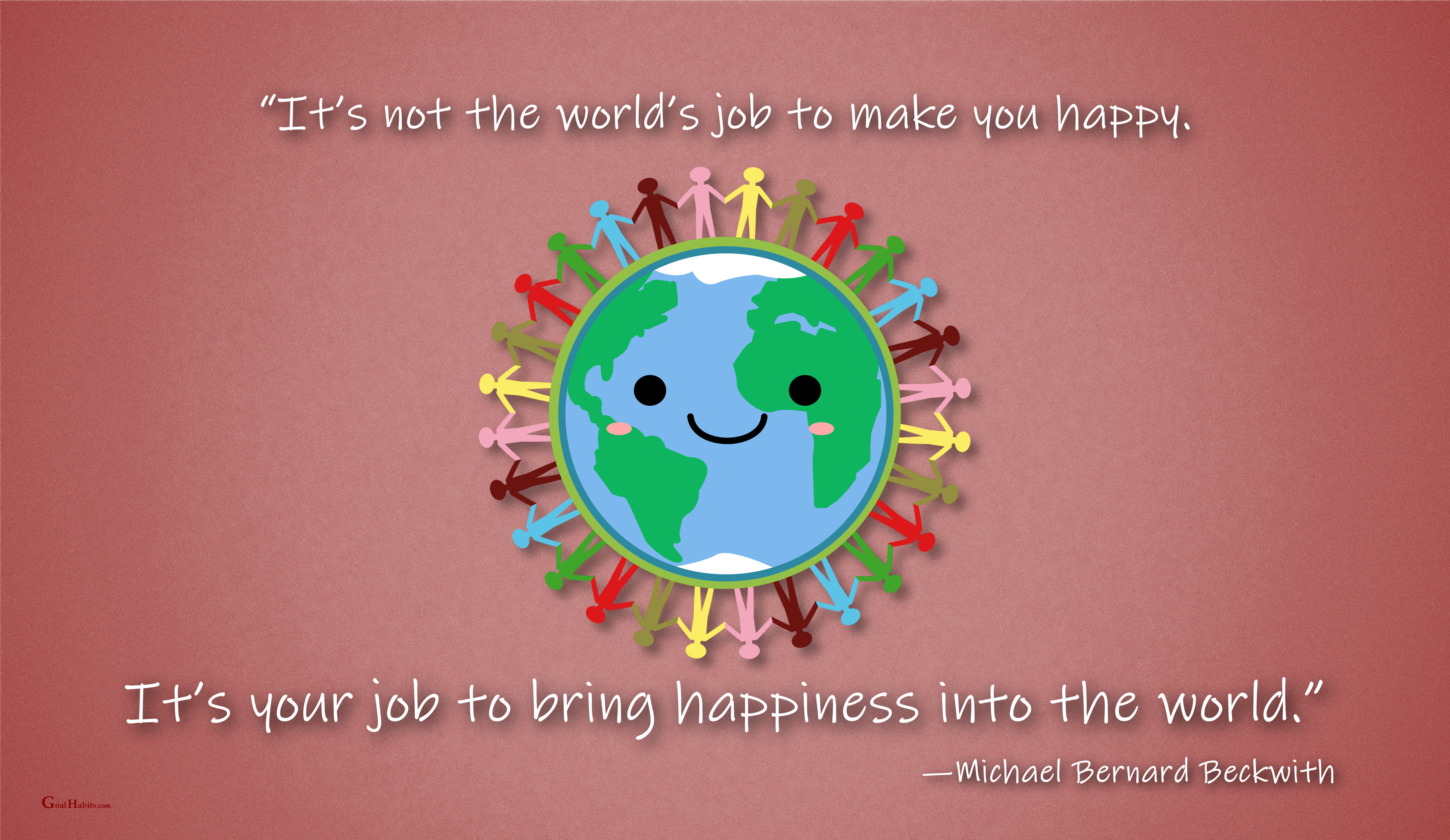 Success Quote on Happiness Posted on July 28, 2020 by Paul Mark Sutherland “It’s not the world’s job to make you happy. It’s your job to bring happiness into the world.” –Michael Bernard Beckwith ________________________ Enjoy today. Achieve today. Tomorrow is promised to no one! original graphic credit: unknown Share this: Click to share on Facebook (Opens in new window) Facebook Click to share on X (Opens in new window) X Click to share on LinkedIn (Opens in new window) LinkedIn Click to share on Pinterest (Opens in new window) Pinterest Click to share on Reddit (Opens in new window) Reddit Click to email a link to a friend (Opens in new window) Email More Click to print (Opens in new window) Print Like Loading...
