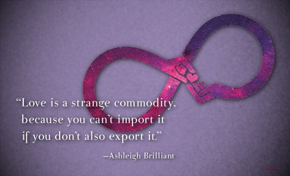 Success Quote on Love Posted on December 4, 2020 by Paul Mark Sutherland “Love is a strange commodity, because you can’t import it if you don’t also export it.” —Ashleigh Brilliant ________________________ Enjoy today. Achieve today. Tomorrow is promised to no one! original graphic credit: unknown Share this: Click to share on Facebook (Opens in new window) Facebook Click to share on X (Opens in new window) X Click to share on LinkedIn (Opens in new window) LinkedIn Click to share on Pinterest (Opens in new window) Pinterest Click to share on Reddit (Opens in new window) Reddit Click to email a link to a friend (Opens in new window) Email More Click to print (Opens in new window) Print Like Loading...