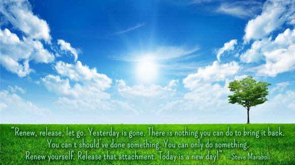 “Renew, release, let go. Yesterday is gone. There is nothing you can do to bring it back. You can’t should’ve done something. You can only do something. Renew yourself. Release that attachment. Today is a new day!”