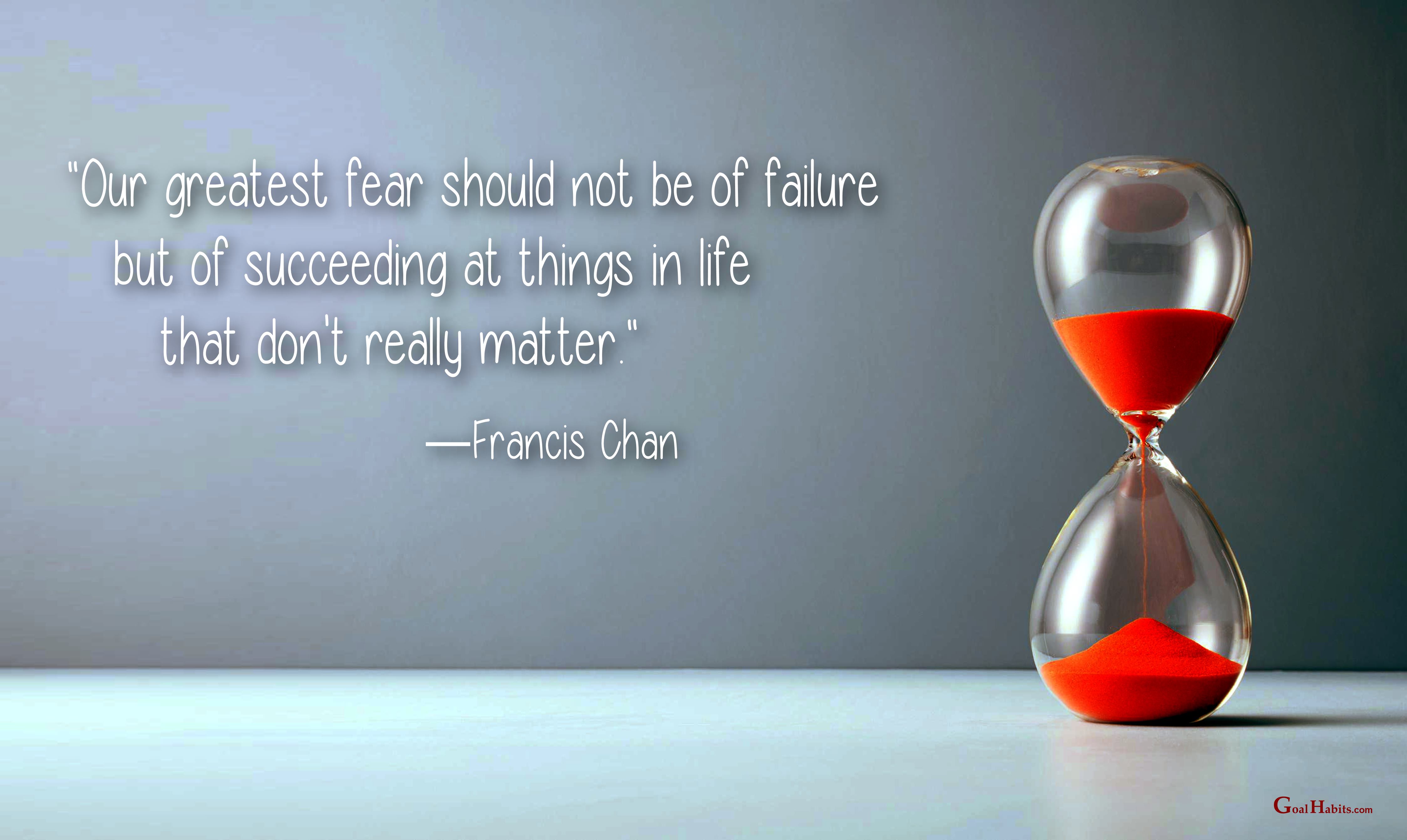 Success Quote on Personal Potential Posted on July 30, 2021 by Paul Mark Sutherland “Our greatest fear should not be of failure but of succeeding at things in life that don’t really matter.” ―Francis Chan ________________________ Enjoy today. Achieve today. Tomorrow is promised to no one! original graphic credit: unknown Share this: Click to share on Facebook (Opens in new window) Facebook Click to share on X (Opens in new window) X Click to share on LinkedIn (Opens in new window) LinkedIn Click to share on Pinterest (Opens in new window) Pinterest Click to share on Reddit (Opens in new window) Reddit Click to email a link to a friend (Opens in new window) Email More Click to print (Opens in new window) Print Like Loading...