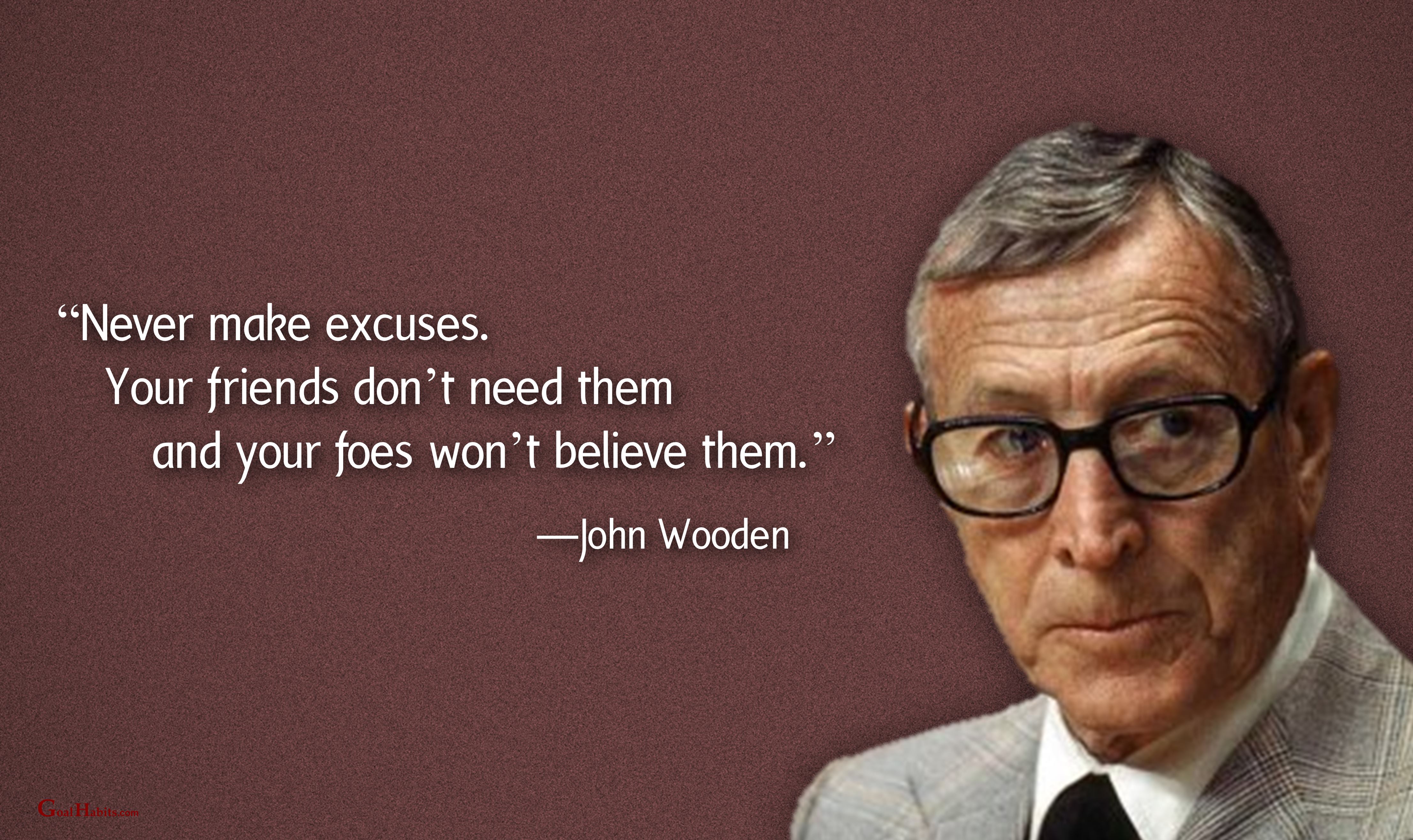 Success Quote on Accountability Posted on August 6, 2021 by Paul Mark Sutherland “Never make excuses. Your friends don’t need them and your foes won’t believe them.” ―John Wooden ________________________ Enjoy today. Achieve today. Tomorrow is promised to no one! original graphic credit: unknown Share this: Click to share on Facebook (Opens in new window) Facebook Click to share on X (Opens in new window) X Click to share on LinkedIn (Opens in new window) LinkedIn Click to share on Pinterest (Opens in new window) Pinterest Click to share on Reddit (Opens in new window) Reddit Click to email a link to a friend (Opens in new window) Email More Click to print (Opens in new window) Print Like Loading...