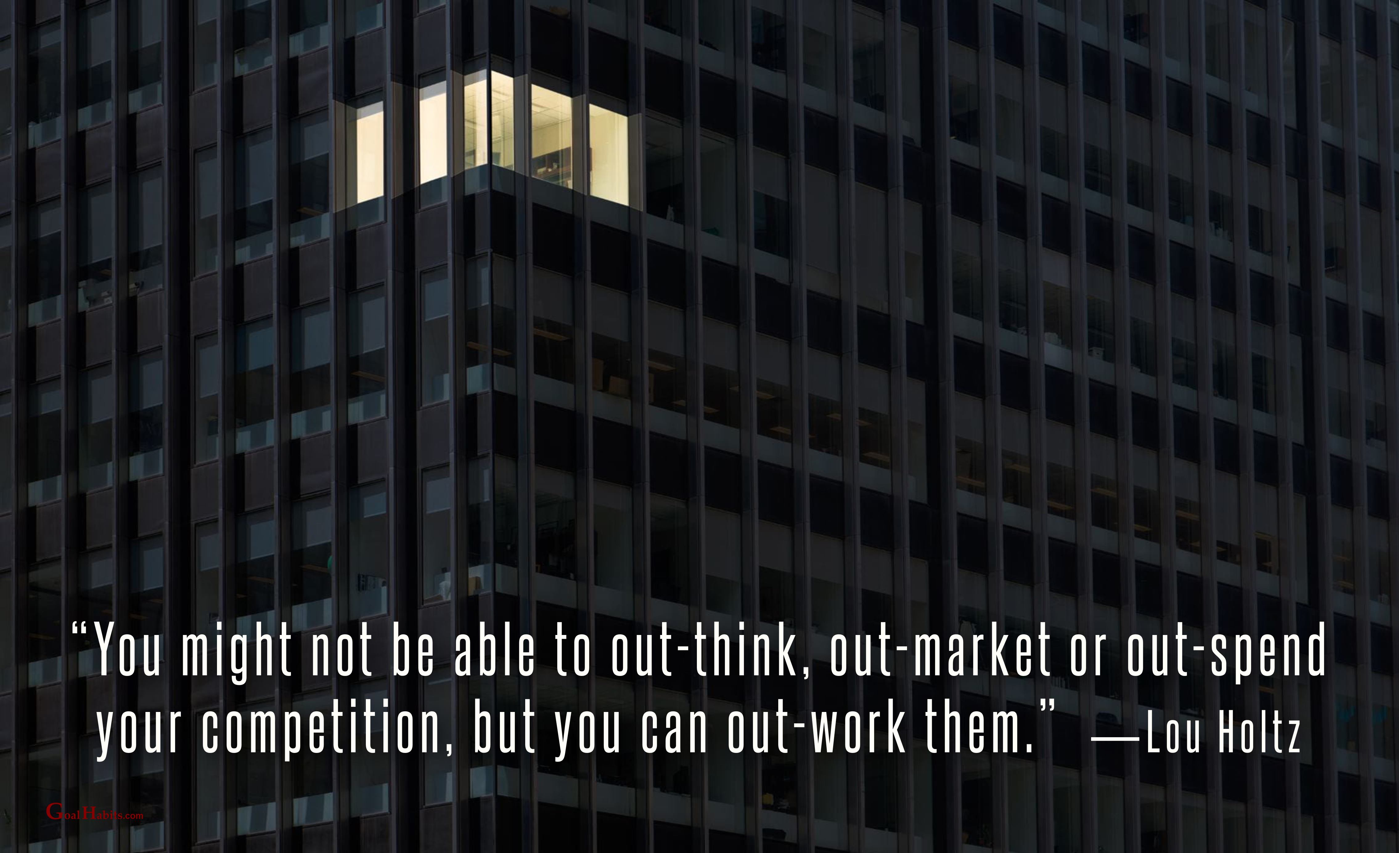 Success Quote on Grit Posted on September 1, 2021 by Paul Mark Sutherland “You might not be able to out-think, out-market or out-spend your competition, but you can out-work them.” ―Lou Holtz ________________________ Enjoy today.Achieve today.Tomorrow is promised to no one! original graphic credit: unknown Share this: Click to share on Facebook (Opens in new window) Facebook Click to share on X (Opens in new window) X Click to share on LinkedIn (Opens in new window) LinkedIn Click to share on Pinterest (Opens in new window) Pinterest Click to share on Reddit (Opens in new window) Reddit Click to email a link to a friend (Opens in new window) Email More Click to print (Opens in new window) Print Like Loading...