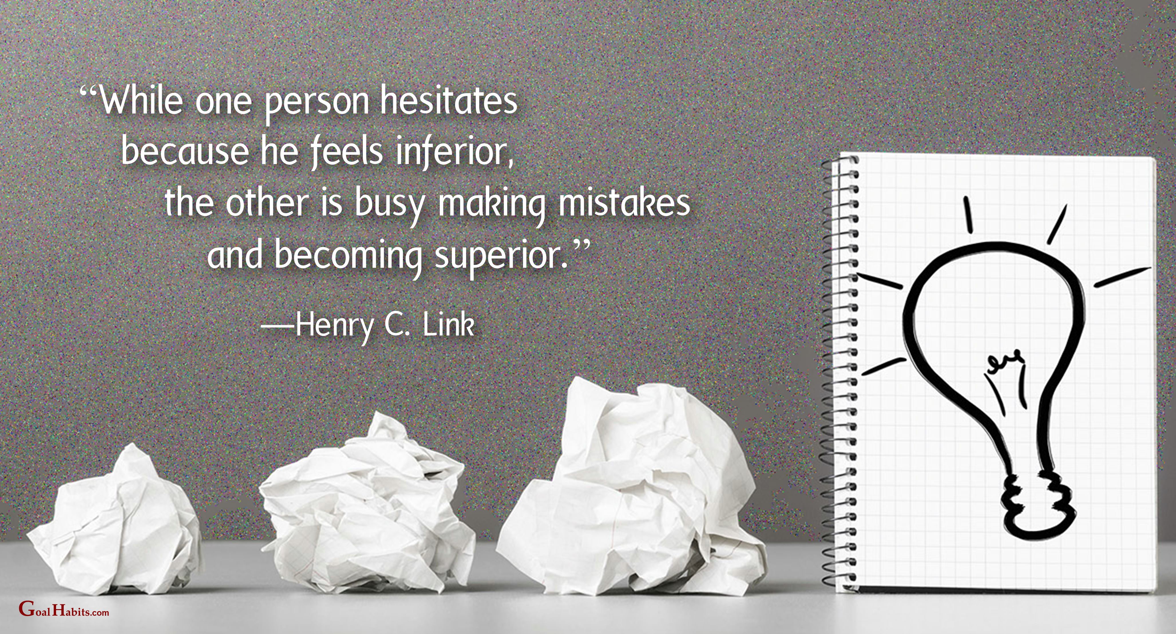 “While one person hesitates because he feels inferior, the other is busy making mistakes and becoming superior.”