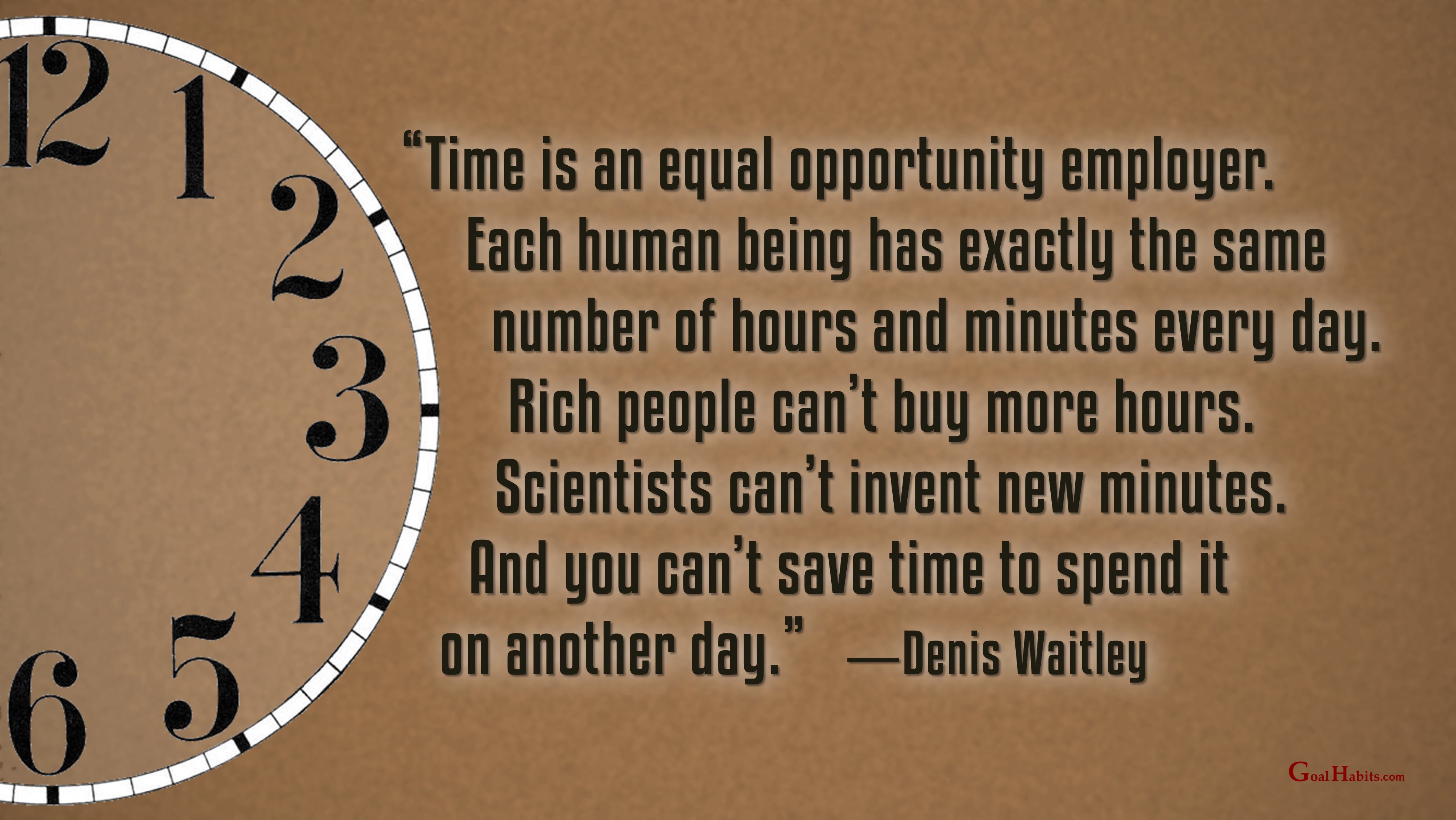 “Time is an equal opportunity employer. Each human being has exactly the same number of hours and minutes every day. Rich people can’t buy more hours. Scientists can’t invent new minutes. And you can’t save time to spend it on another day.”