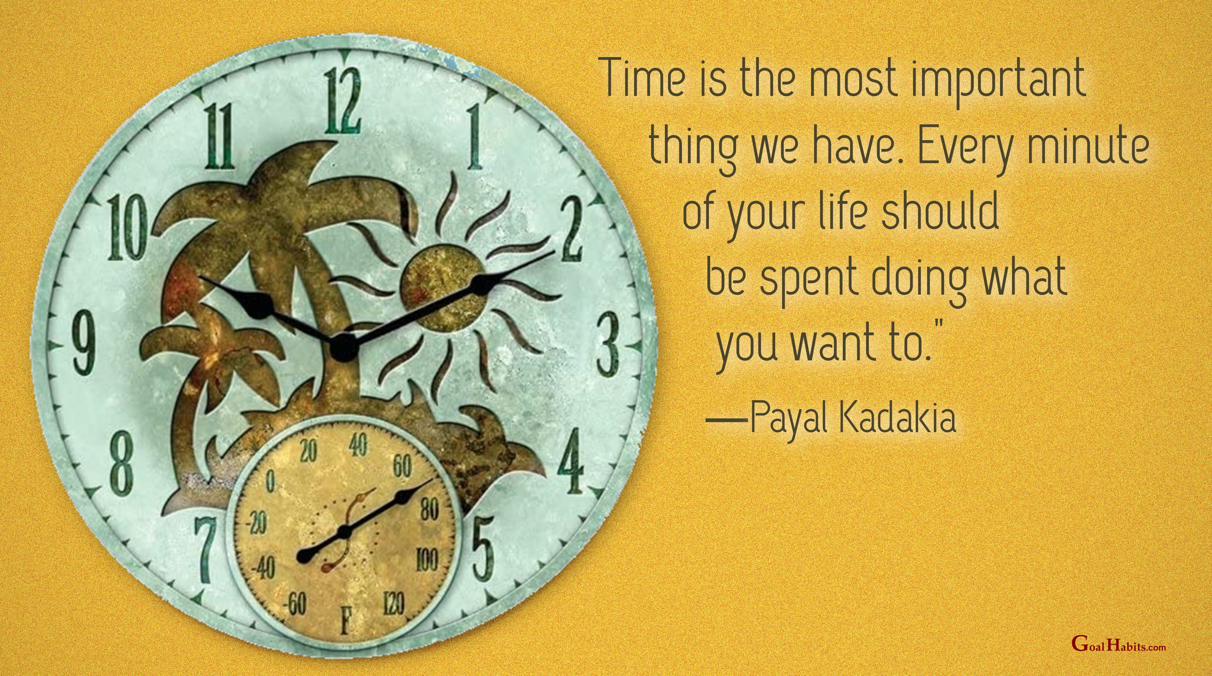 Success Quote on Time Posted on March 22, 2022 by Paul Mark Sutherland “Time is the most important thing we have. Every minute of your life should be spent doing what you want to.” ―Payal Kadakia ________________________ Enjoy today. Achieve today. Tomorrow is promised to no one! original graphic credit: unknown Share this: Click to share on Facebook (Opens in new window) Facebook Click to share on X (Opens in new window) X Click to share on LinkedIn (Opens in new window) LinkedIn Click to share on Pinterest (Opens in new window) Pinterest Click to share on Reddit (Opens in new window) Reddit Click to email a link to a friend (Opens in new window) Email More Click to print (Opens in new window) Print Like Loading...