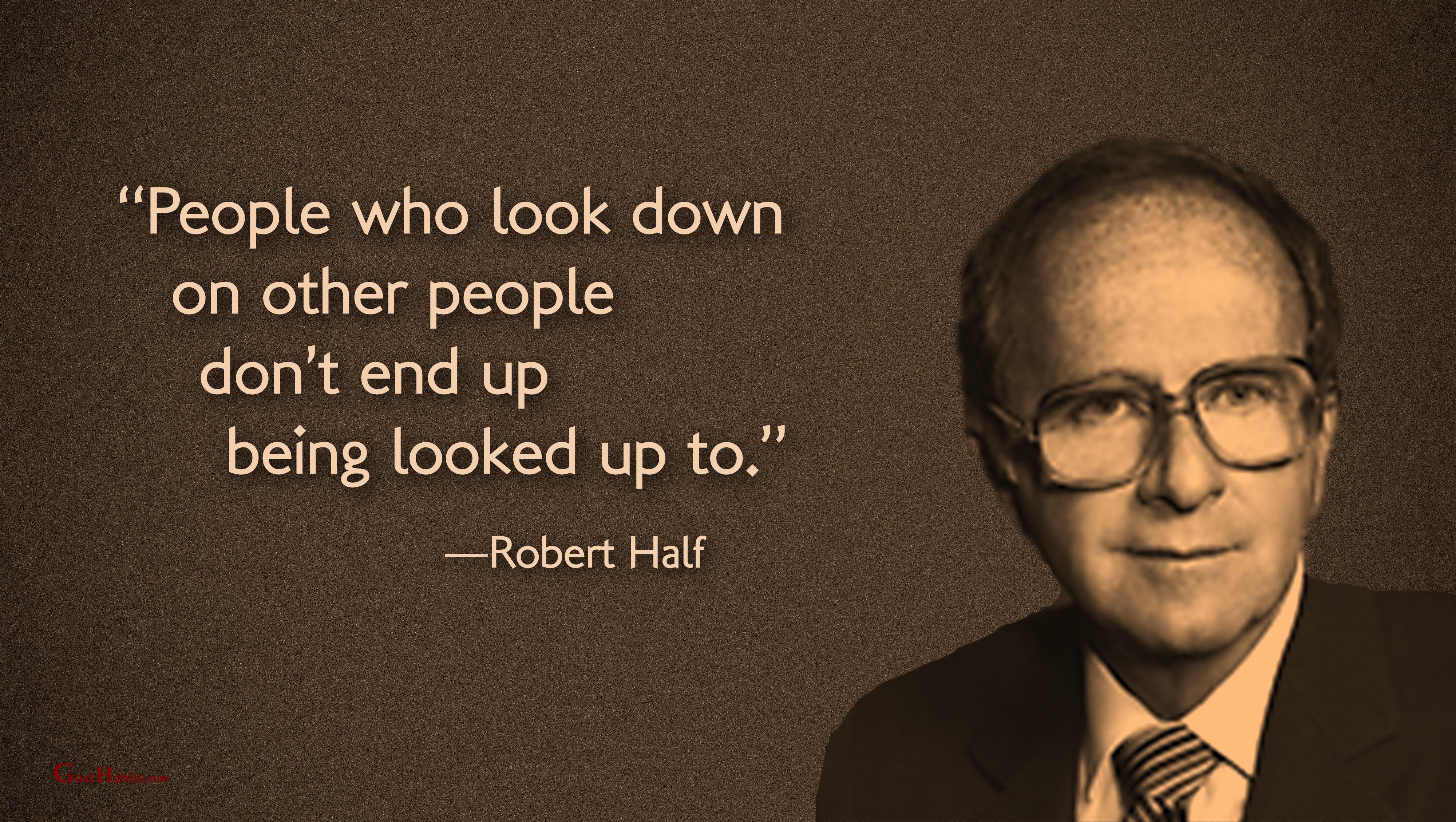 Success Quote on Respect Posted on June 16, 2022 by Paul Mark Sutherland “People who look down on other people don’t end up being looked up to.” —Robert Half ________________________ Enjoy today. Achieve today. Tomorrow is promised to no one! original graphic credit: unknown Share this: Click to share on Facebook (Opens in new window) Facebook Click to share on X (Opens in new window) X Click to share on LinkedIn (Opens in new window) LinkedIn Click to share on Pinterest (Opens in new window) Pinterest Click to share on Reddit (Opens in new window) Reddit Click to email a link to a friend (Opens in new window) Email More Click to print (Opens in new window) Print Like Loading...