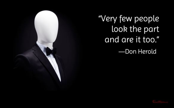 Success Quote on Honesty Posted on October 5, 2022 by Paul Mark Sutherland “Very few people look the part and are it too.” ―Don Herold ________________________ Enjoy today. Achieve today. Tomorrow is promised to no one! original graphic credit: unknown Share this: Click to share on Facebook (Opens in new window) Facebook Click to share on X (Opens in new window) X Click to share on LinkedIn (Opens in new window) LinkedIn Click to share on Pinterest (Opens in new window) Pinterest Click to share on Reddit (Opens in new window) Reddit Click to email a link to a friend (Opens in new window) Email More Click to print (Opens in new window) Print Like Loading...