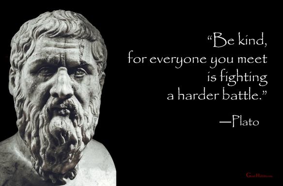 Success Quote on Kindness Posted on October 17, 2022 by Paul Mark Sutherland “Be kind, for everyone you meet is fighting a harder battle.” ―Plato ________________________ Enjoy today. Achieve today. Tomorrow is promised to no one! original graphic credit: unknown Share this: Click to share on Facebook (Opens in new window) Facebook Click to share on X (Opens in new window) X Click to share on LinkedIn (Opens in new window) LinkedIn Click to share on Pinterest (Opens in new window) Pinterest Click to share on Reddit (Opens in new window) Reddit Click to email a link to a friend (Opens in new window) Email More Click to print (Opens in new window) Print Like Loading...