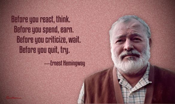 Success Quote on Personal Growth Posted on December 21, 2022 by Paul Mark Sutherland “Before you react, think. Before you spend, earn. Before you criticize, wait. Before you quit, try.” ―Ernest Hemingway ________________________ Enjoy today.Achieve today.Tomorrow is promised to no one! original graphic credit: unknown Share this: Click to share on Facebook (Opens in new window) Facebook Click to share on X (Opens in new window) X Click to share on LinkedIn (Opens in new window) LinkedIn Click to share on Pinterest (Opens in new window) Pinterest Click to share on Reddit (Opens in new window) Reddit Click to email a link to a friend (Opens in new window) Email More Click to print (Opens in new window) Print Like Loading...