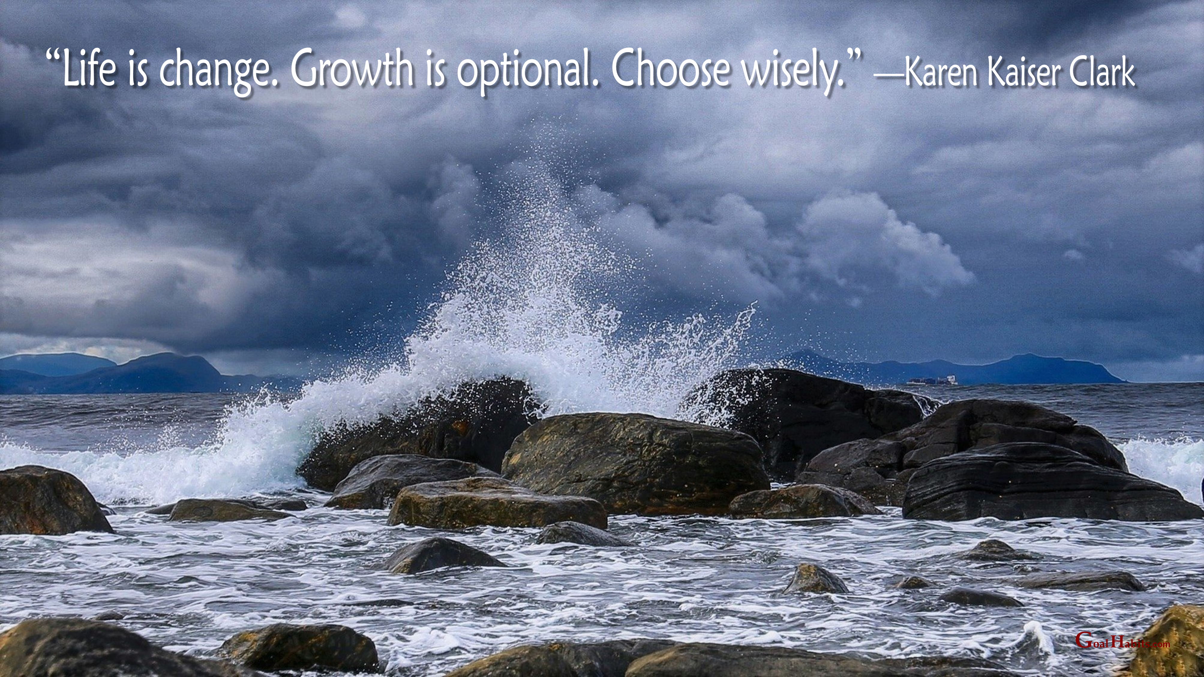 Success Quote on Personal Growth Posted on January 6, 2023 by Paul Mark Sutherland “Life is change. Growth is optional. Choose wisely.” —Karen Kaiser Clark ________________________ Enjoy today.Achieve today.Tomorrow is promised to no one! original graphic credit: unknown Share this: Click to share on Facebook (Opens in new window) Facebook Click to share on X (Opens in new window) X Click to share on LinkedIn (Opens in new window) LinkedIn Click to share on Pinterest (Opens in new window) Pinterest Click to share on Reddit (Opens in new window) Reddit Click to email a link to a friend (Opens in new window) Email More Click to print (Opens in new window) Print Like Loading...