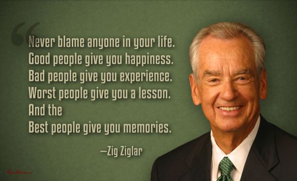“Never blame anyone in your life. Good people give you happiness. Bad people give you experience. Worst people give you a lesson. And the Best people give you memories.”