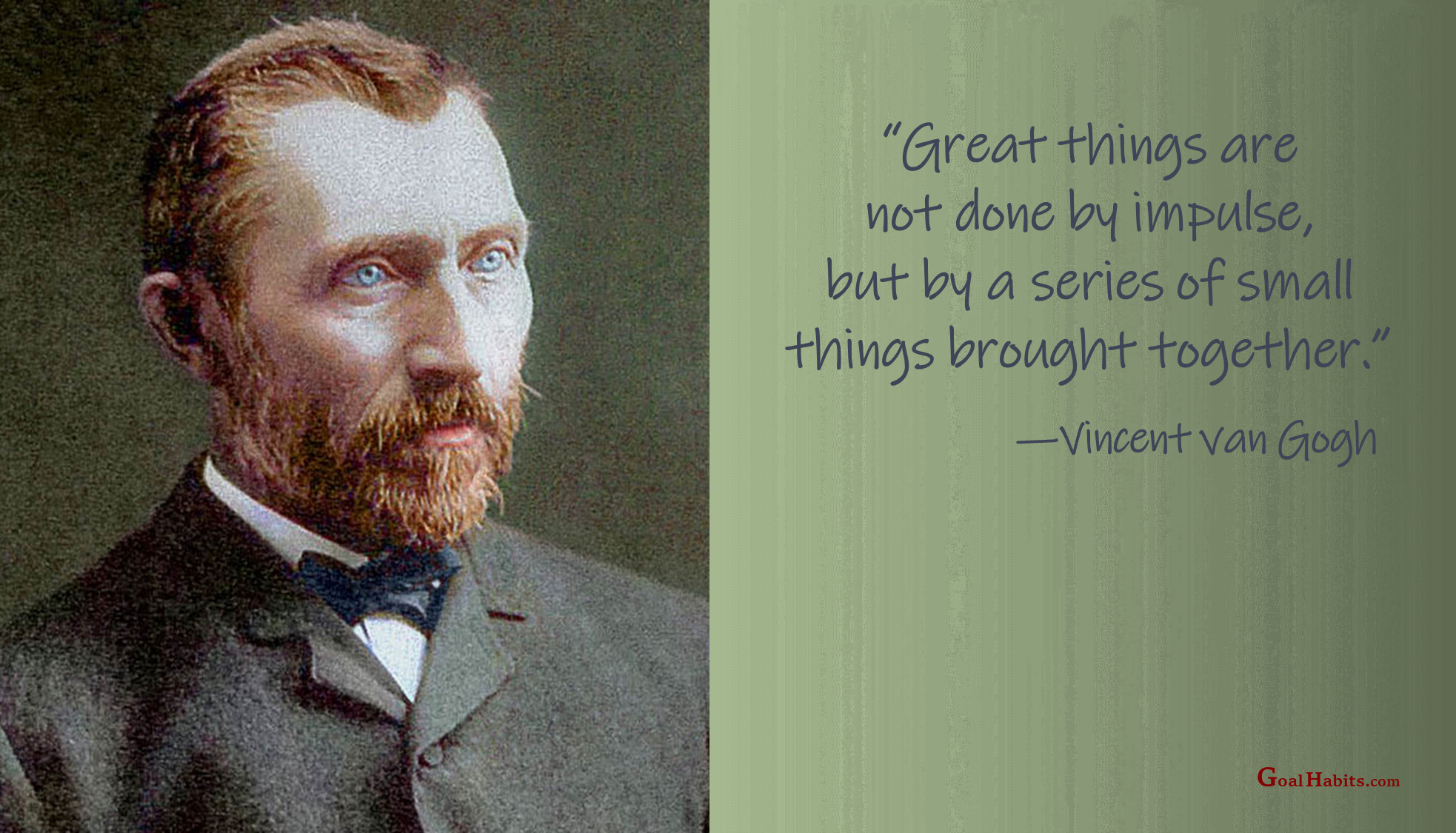 Success Quote on Achievement Posted on February 26, 2024 by Paul Mark Sutherland “Great things are not done by impulse, but by a series of small things brought together.” —Vincent van Gogh ________________________ Enjoy today. Achieve today. Tomorrow is promised to no one! original graphic credit: unknown Share this: Click to share on Facebook (Opens in new window) Facebook Click to share on X (Opens in new window) X Click to share on LinkedIn (Opens in new window) LinkedIn Click to share on Pinterest (Opens in new window) Pinterest Click to share on Reddit (Opens in new window) Reddit Click to email a link to a friend (Opens in new window) Email More Click to print (Opens in new window) Print Like Loading...