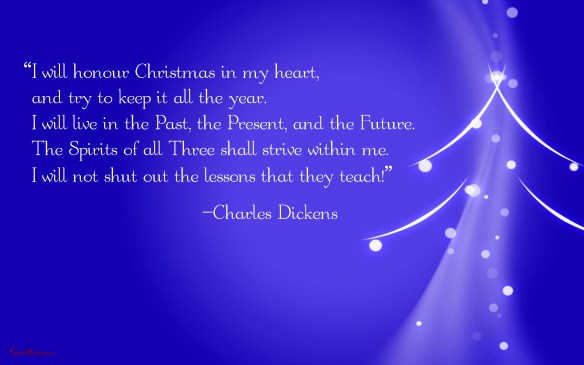 “I will honour Christmas in my heart, and try to keep it all the year. I will live in the Past, the Present, and the Future. The Spirits of all Three shall strive within me. I will not shut out the lessons that they teach!”