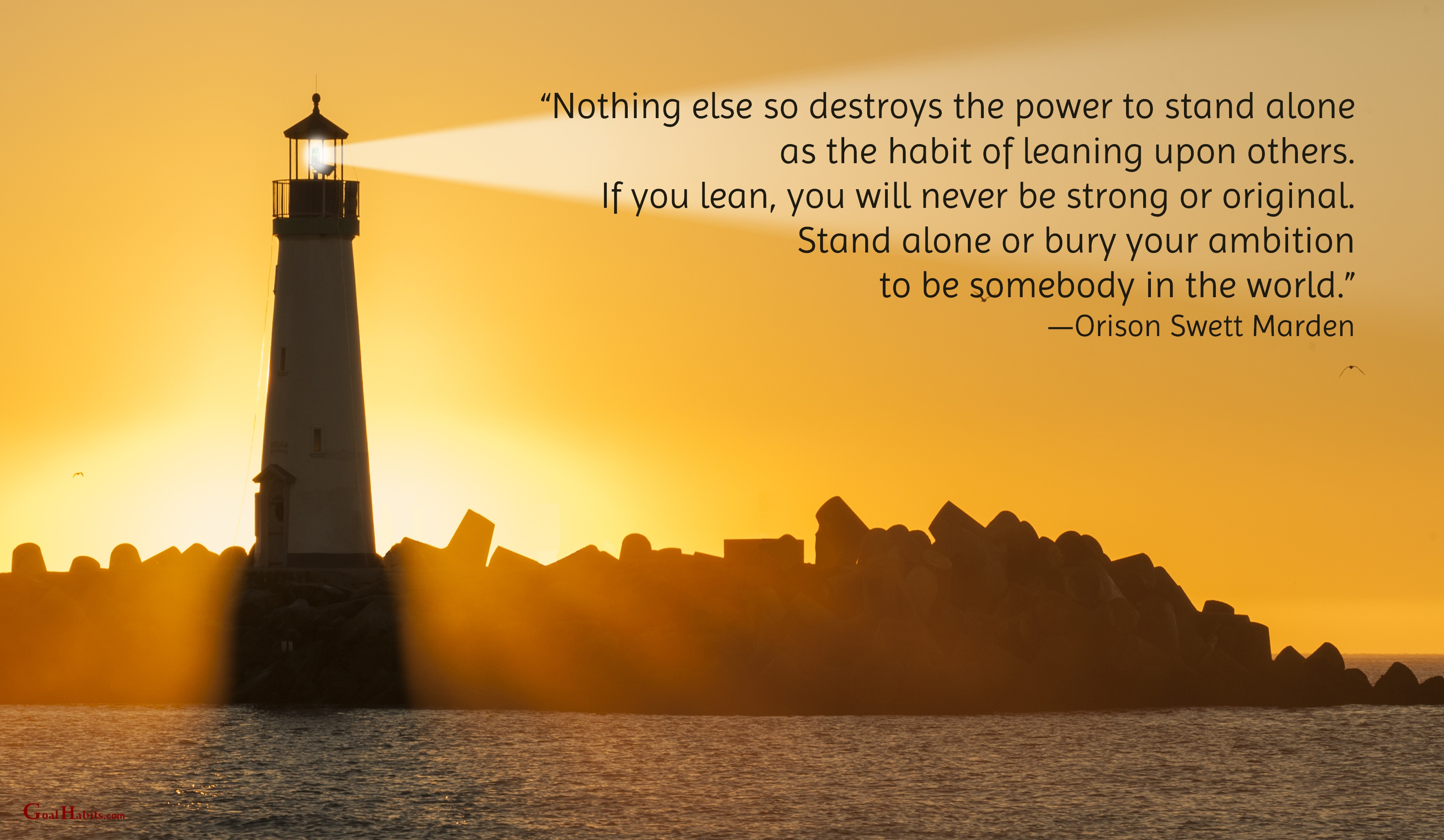 “Nothing else so destroys the power to stand alone as the habit of leaning upon others. If you lean, you will never be strong or original. Stand alone or bury your ambition to be somebody in the world.”