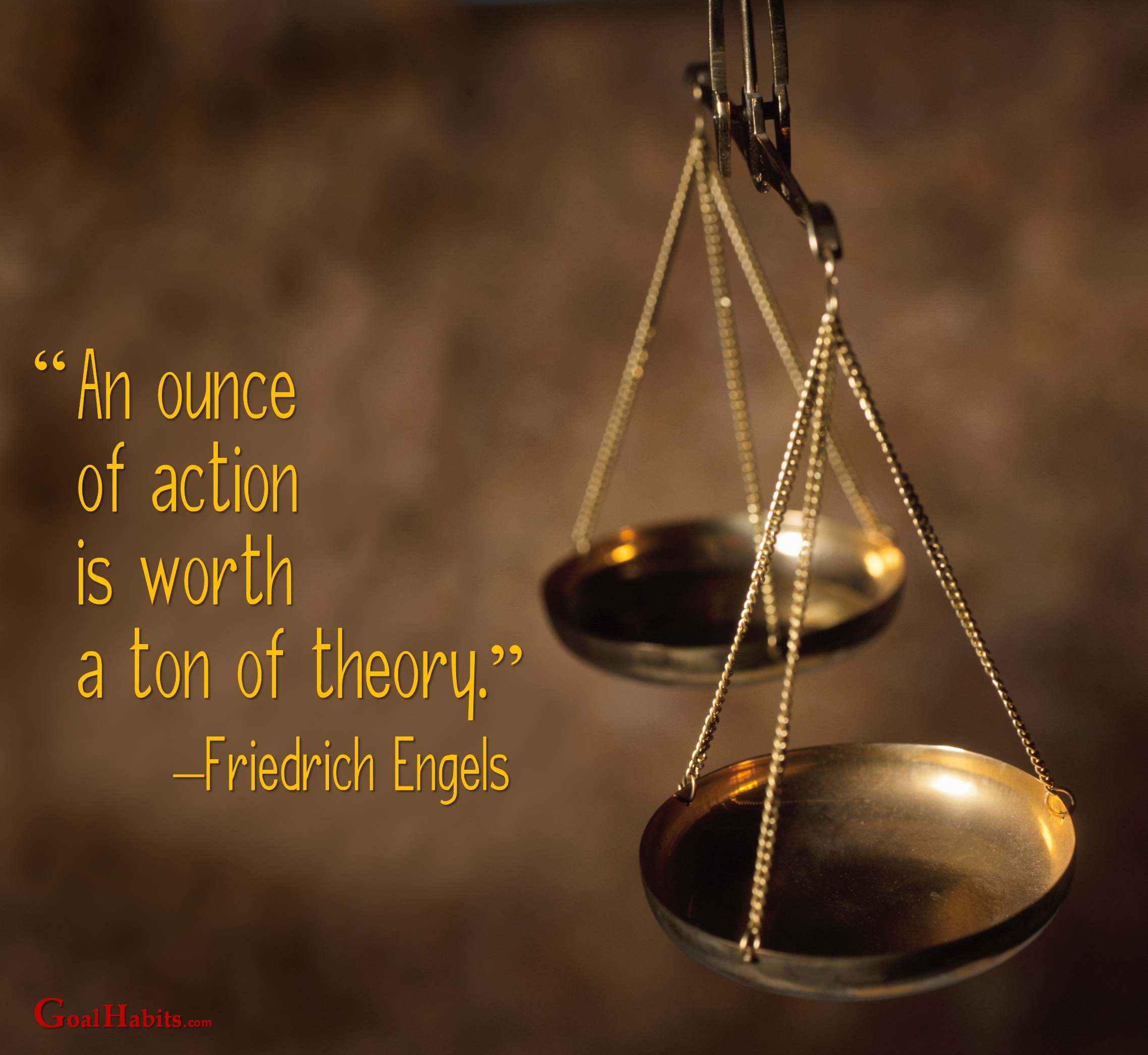 Success Quote – Mar. 20, 2015 Posted on March 20, 2015 by Paul Mark Sutherland Reply “An ounce of action is worth a ton of theory.” —Friedrich Engels ___________________________________ Enjoy today. Achieve today. Tomorrow is promised to no one! original graphic credit: unknown Share this: Click to share on Facebook (Opens in new window) Facebook Click to share on X (Opens in new window) X Click to share on LinkedIn (Opens in new window) LinkedIn Click to share on Pinterest (Opens in new window) Pinterest Click to share on Reddit (Opens in new window) Reddit Click to email a link to a friend (Opens in new window) Email More Click to print (Opens in new window) Print Like Loading...