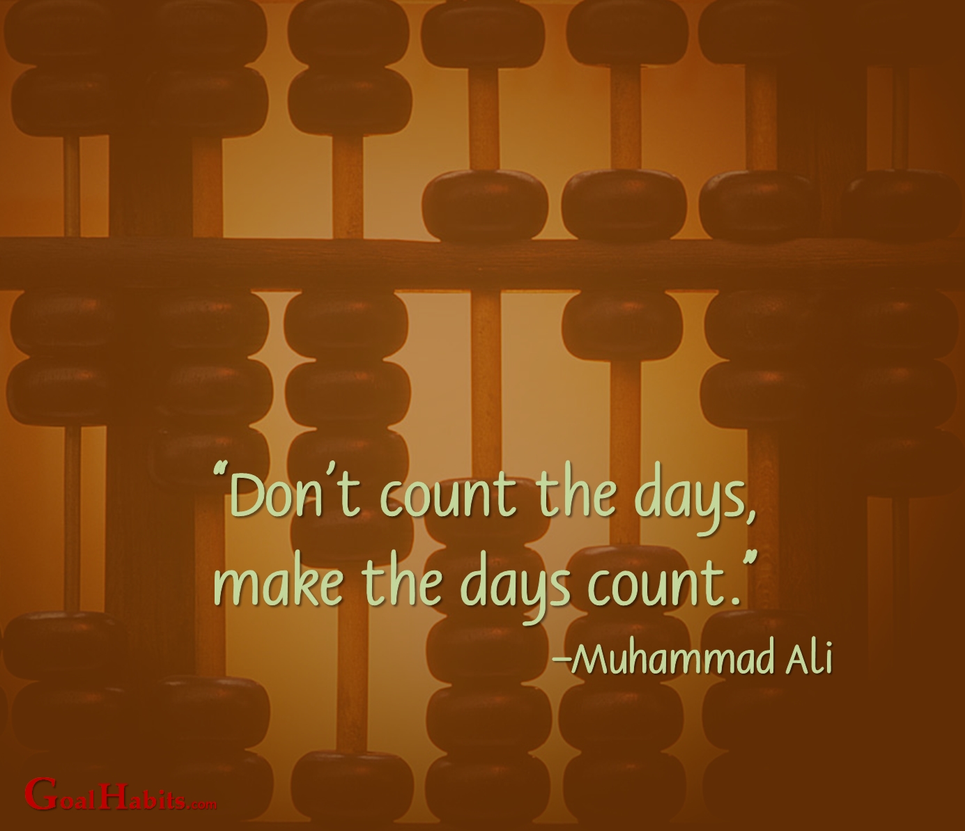 Success Quote – Mar. 22, 2015 Posted on March 22, 2015 by Paul Mark Sutherland Reply “Don’t count the days, make the days count.” –Muhammad Ali ___________________________________ Enjoy today. Achieve today. Tomorrow is promised to no one! original graphic credit: unknown Share this: Click to share on Facebook (Opens in new window) Facebook Click to share on X (Opens in new window) X Click to share on LinkedIn (Opens in new window) LinkedIn Click to share on Pinterest (Opens in new window) Pinterest Click to share on Reddit (Opens in new window) Reddit Click to email a link to a friend (Opens in new window) Email More Click to print (Opens in new window) Print Like Loading...