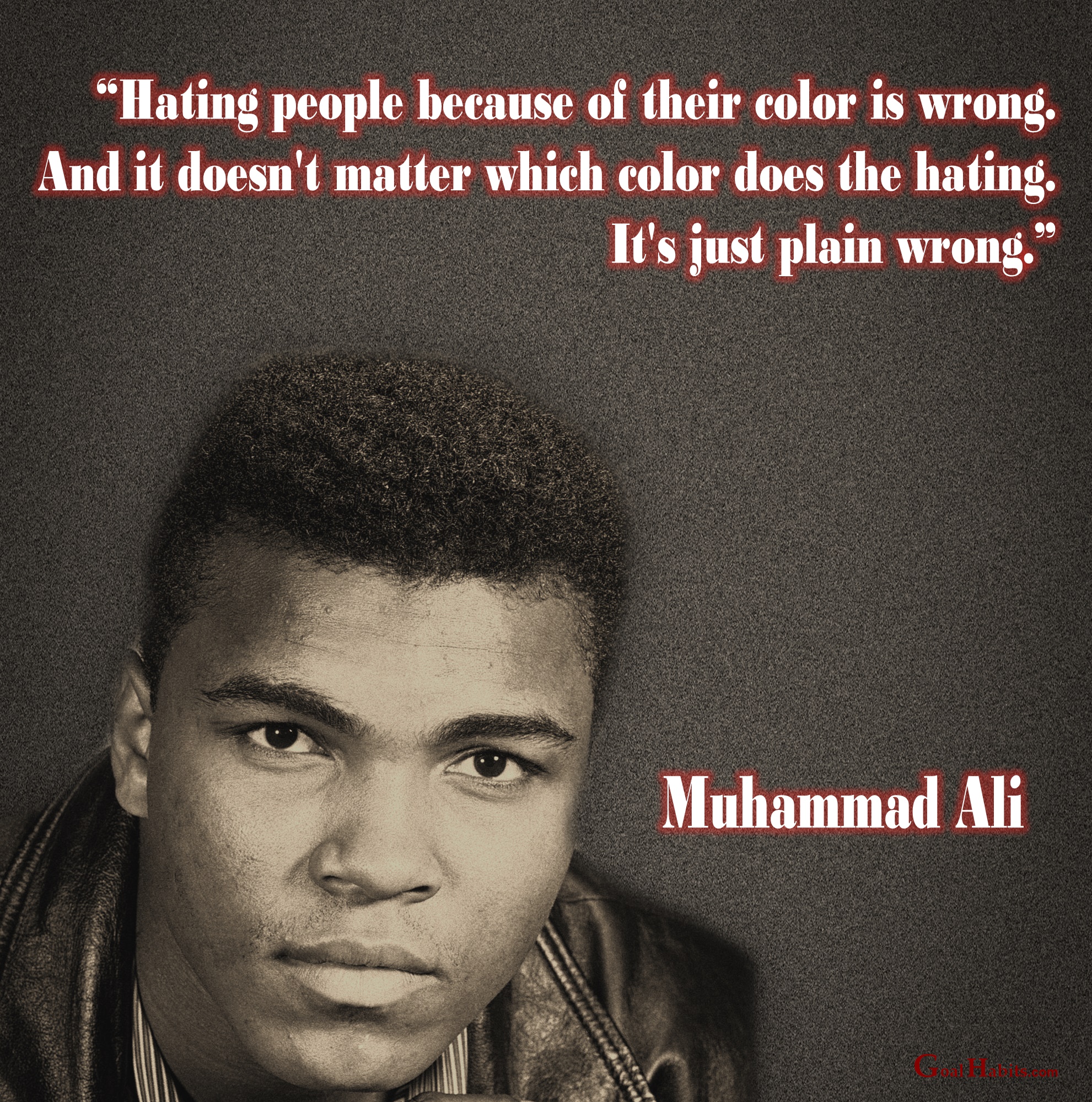 Success Quote – June 26, 2016 Posted on June 26, 2016 by Paul Mark Sutherland Reply “Hating people because of their color is wrong. And it doesn’t matter which color does the hating. It’s just plain wrong.” –Muhammad Ali ______________________ Enjoy today. Achieve today. Tomorrow is promised to no one! original graphic credit: unknown Share this: Click to share on Facebook (Opens in new window) Facebook Click to share on X (Opens in new window) X Click to share on LinkedIn (Opens in new window) LinkedIn Click to share on Pinterest (Opens in new window) Pinterest Click to share on Reddit (Opens in new window) Reddit Click to email a link to a friend (Opens in new window) Email More Click to print (Opens in new window) Print Like Loading...