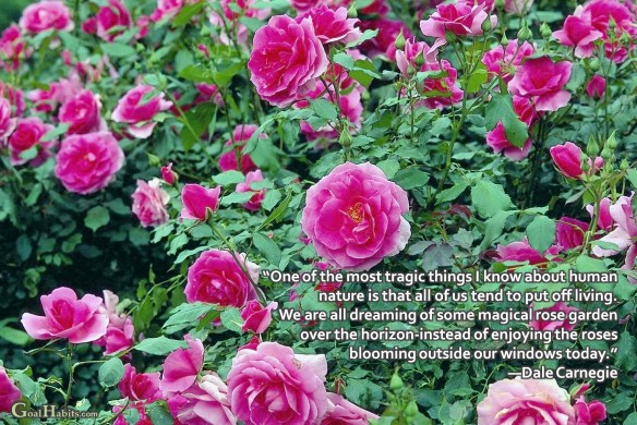 “One of the most tragic things I know about human nature is that all of us tend to put off living. We are all dreaming of some magical rose garden over the horizon-instead of enjoying the roses blooming outside our windows today.”
