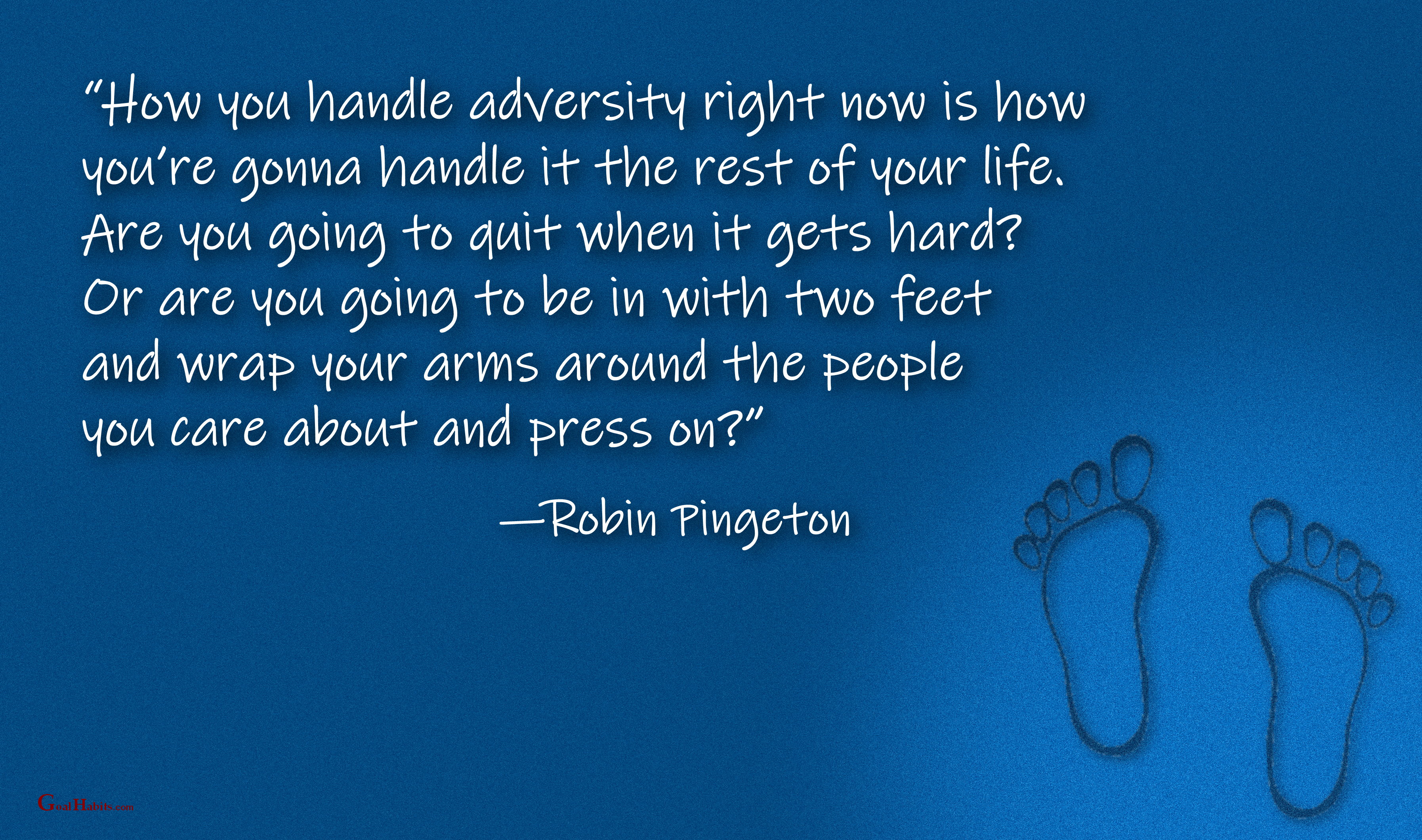“How you handle adversity right now is how you’re gonna handle it the rest of your life. Are you going to quit when it gets hard? Or are you going to be in with two feet and wrap your arms around the people you care about and press on?”