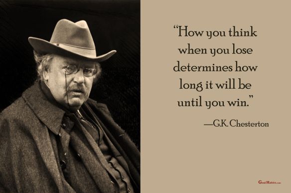 Success Quote on Winning Posted on June 21, 2023 by Paul Mark Sutherland Reply “How you think when you lose determines how long it will be until you win.” —G.K. Chesterton ________________________ Enjoy today. Achieve today. Tomorrow is promised to no one! original graphic credit: unknown Share this: Click to share on Facebook (Opens in new window) Facebook Click to share on X (Opens in new window) X Click to share on LinkedIn (Opens in new window) LinkedIn Click to share on Pinterest (Opens in new window) Pinterest Click to share on Reddit (Opens in new window) Reddit Click to email a link to a friend (Opens in new window) Email More Click to print (Opens in new window) Print Like Loading...