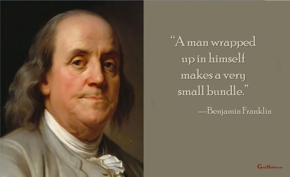 Success Quote on Arrogance Posted on April 4, 2023 by Paul Mark Sutherland Reply “A man wrapped up in himself makes a very small bundle.” —Benjamin Franklin ________________________ Enjoy today. Achieve today. Tomorrow is promised to no one! original graphic credit: unknown Share this: Share on Facebook (Opens in new window) Facebook Share on X (Opens in new window) X Share on LinkedIn (Opens in new window) LinkedIn Share on Pinterest (Opens in new window) Pinterest Share on Reddit (Opens in new window) Reddit Email a link to a friend (Opens in new window) Email More Print (Opens in new window) Print Like Loading...