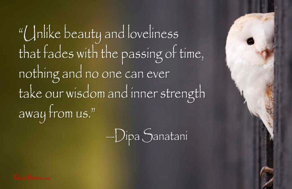 “Unlike beauty and loveliness that fades with the passing of time, nothing and no one can ever take our wisdom and inner strength away from us.”