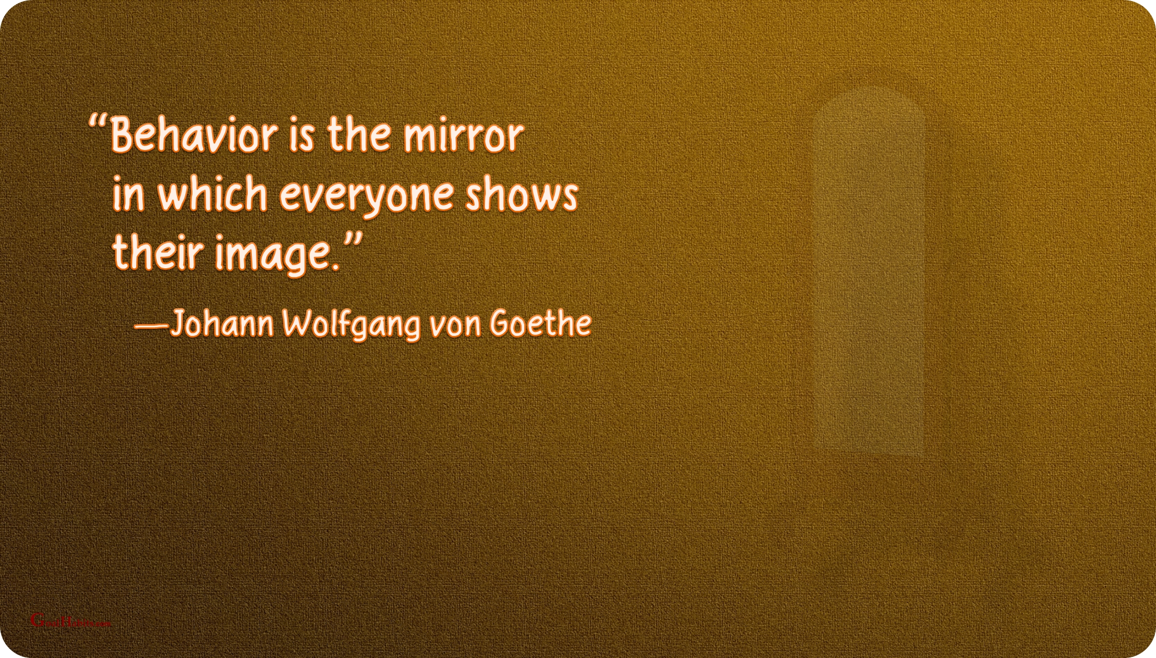 Success Quote on Behavior Posted on August 18, 2025 by Paul Mark Sutherland Reply “Behavior is the mirror in which everyone shows their image.” —Johann Wolfgang von Goethe ________________________ Enjoy today. Achieve today. Tomorrow is promised to no one! original graphic credit: unknown Share this: Click to share on Facebook (Opens in new window) Facebook Click to share on X (Opens in new window) X Click to share on LinkedIn (Opens in new window) LinkedIn Click to share on Pinterest (Opens in new window) Pinterest Click to share on Reddit (Opens in new window) Reddit Click to email a link to a friend (Opens in new window) Email More Click to print (Opens in new window) Print Like Loading...