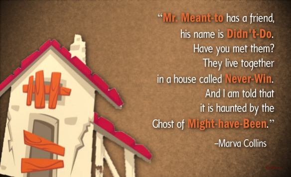 “Mr. Meant-to has a friend, his name is Didn’t-Do. Have you met them? They live together in a house called Never-Win. And I am told that it is haunted by the Ghost of Might-have-Been.”