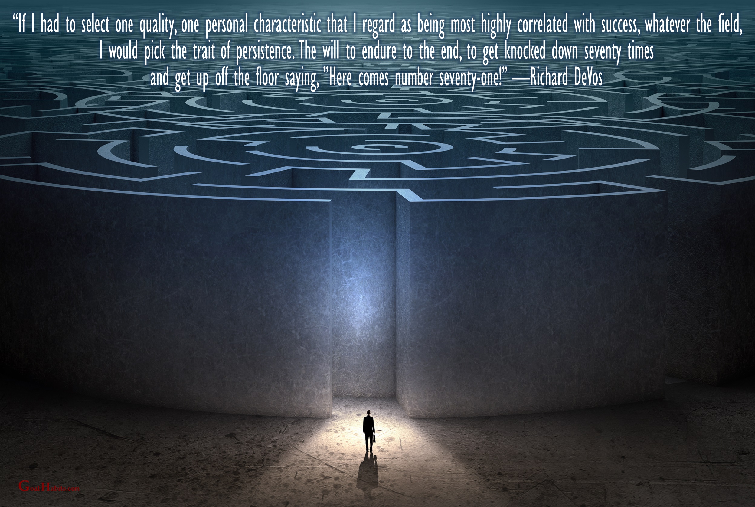 “If I had to select one quality, one personal characteristic that I regard as being most highly correlated with success, whatever the field, I would pick the trait of persistence. The will to endure to the end, to get knocked down seventy times and get up off the floor saying, ”Here comes number seventy-one!”