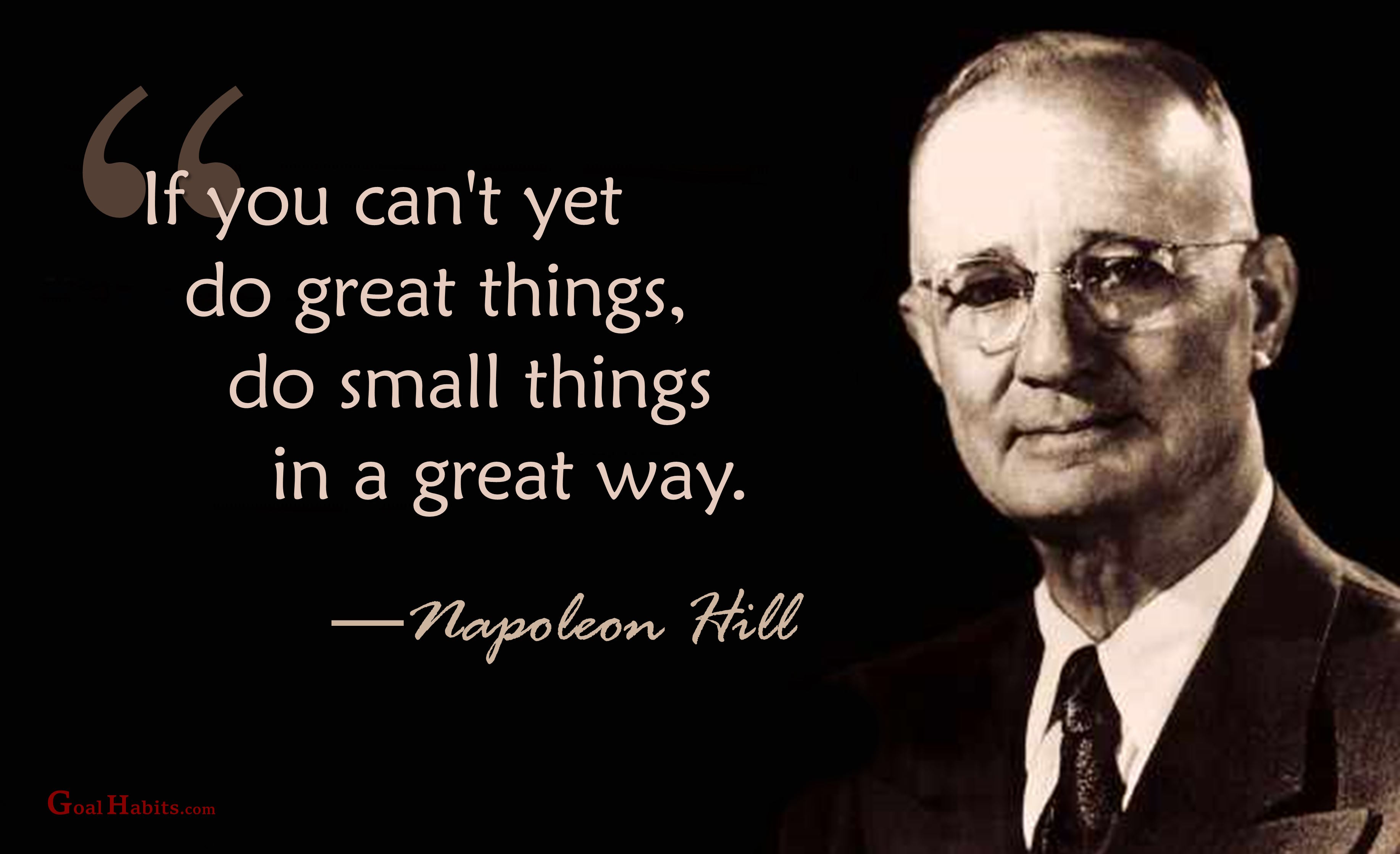 Success Quote on Habits Posted on February 24, 2023 by Paul Mark Sutherland Reply “If you can’t yet do great things, do small things in a great way.” ―Napoleon Hill ________________________ Enjoy today. Achieve today. Tomorrow is promised to no one! original graphic credit: unknown Share this: Click to share on Facebook (Opens in new window) Facebook Click to share on X (Opens in new window) X Click to share on LinkedIn (Opens in new window) LinkedIn Click to share on Pinterest (Opens in new window) Pinterest Click to share on Reddit (Opens in new window) Reddit Click to email a link to a friend (Opens in new window) Email More Click to print (Opens in new window) Print Like Loading...