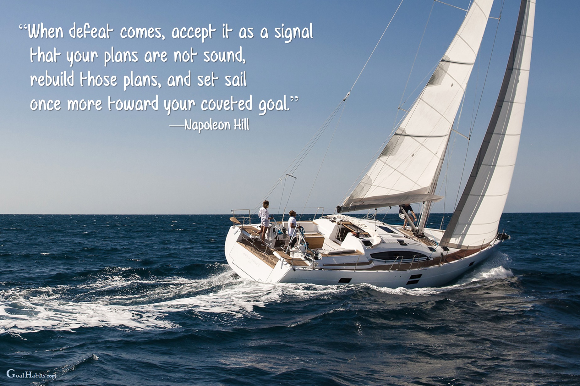 “When defeat comes, accept it as a signal that your plans are not sound, rebuild those plans, and set sail once more toward your coveted goal.”